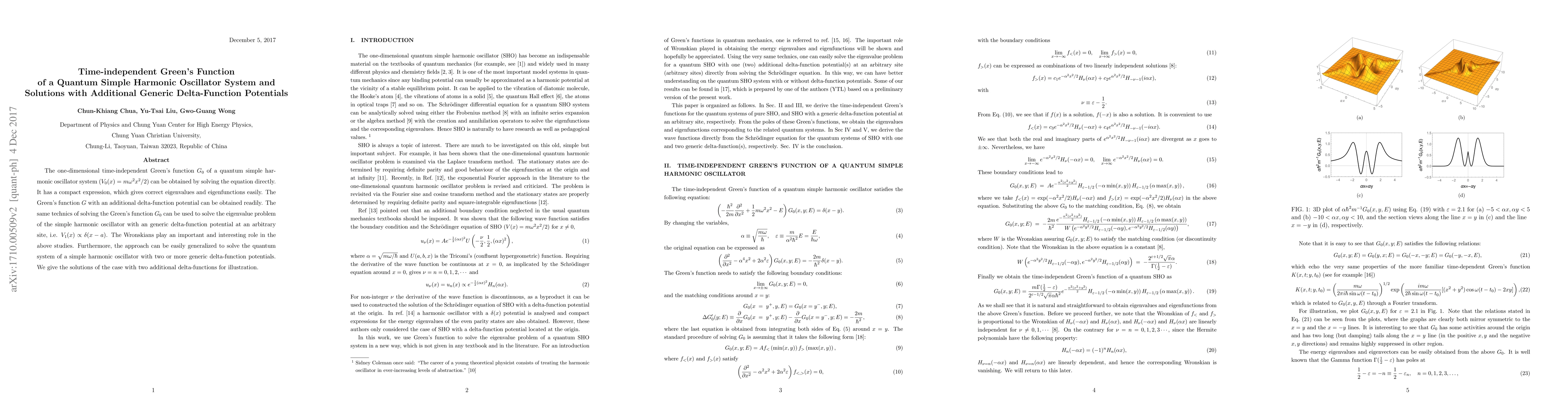 This paper derives the time-independent Green's function for a quantum simple harmonic oscillator and extends it to systems with additional delta-function potentials. The method is shown to be generalizable to multiple delta-function potentials, with a focus on the role of Wronskians in solving the eigenvalue problem.