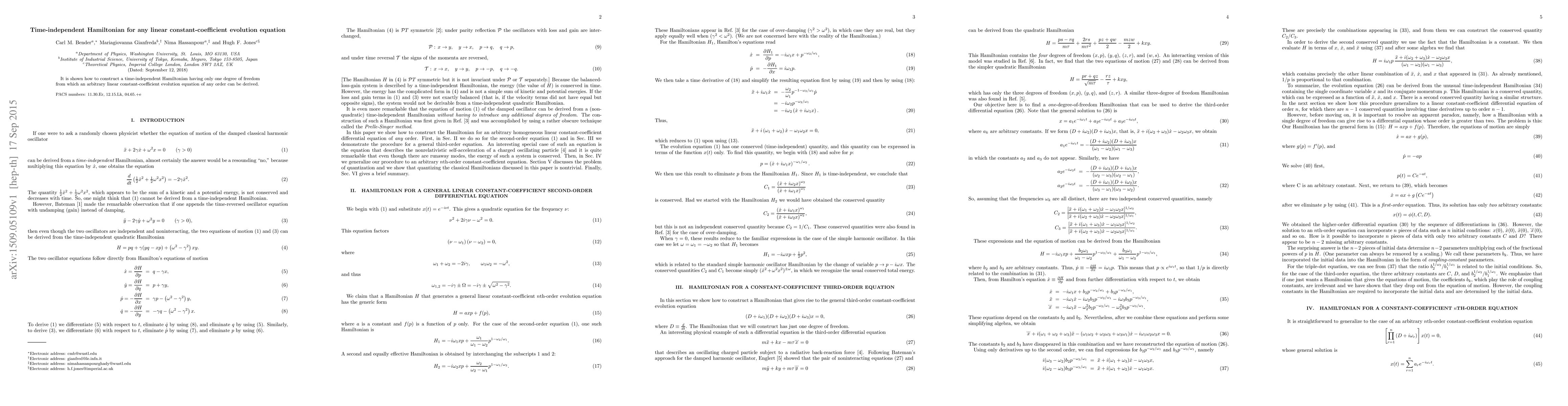 It is shown how to construct a time-independent Hamiltonian having only one degree of freedom from which an arbitrary linear constant-coefficient evolution equation of any order can be derived.