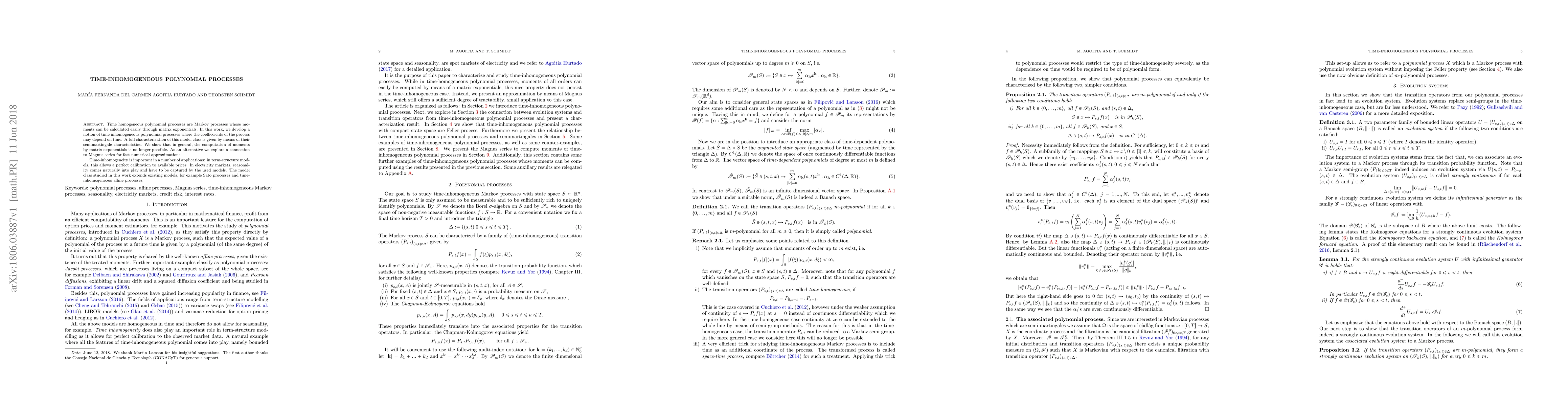 This research introduces time-inhomogeneous polynomial processes, extending existing models like Sato and affine processes. It provides a full characterization via semimartingale characteristics and suggests using Magnus series for numerical moment computations, as matrix exponential methods fail.