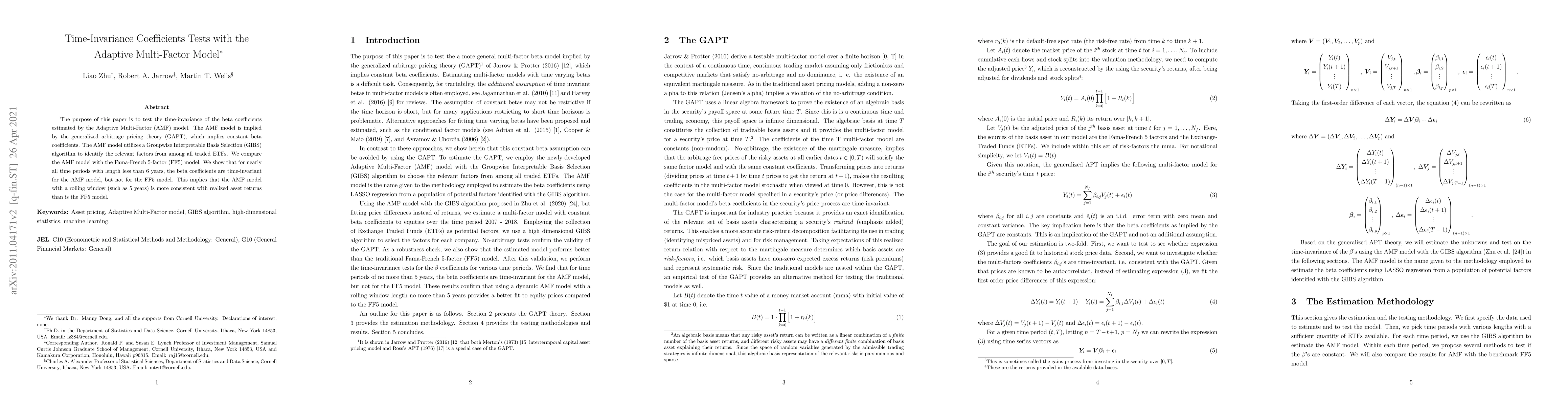 The purpose of this paper is to test the time-invariance of the beta coefficients estimated by the Adaptive Multi-Factor (AMF) model. The AMF model is implied by the generalized arbitrage pricing theory (GAPT), which implies constant beta coefficients. The AMF model utilizes a Groupwise Interpretable Basis Selection (GIBS) algorithm to identify the relevant factors from among all traded ETFs. We compare the AMF model with the Fama-French 5-factor (FF5) model. We show that for nearly all time periods with length less than 6 years, the beta coefficients are time-invariant for the AMF model, but not for the FF5 model. This implies that the AMF model with a rolling window (such as 5 years) is more consistent with realized asset returns than is the FF5 model.