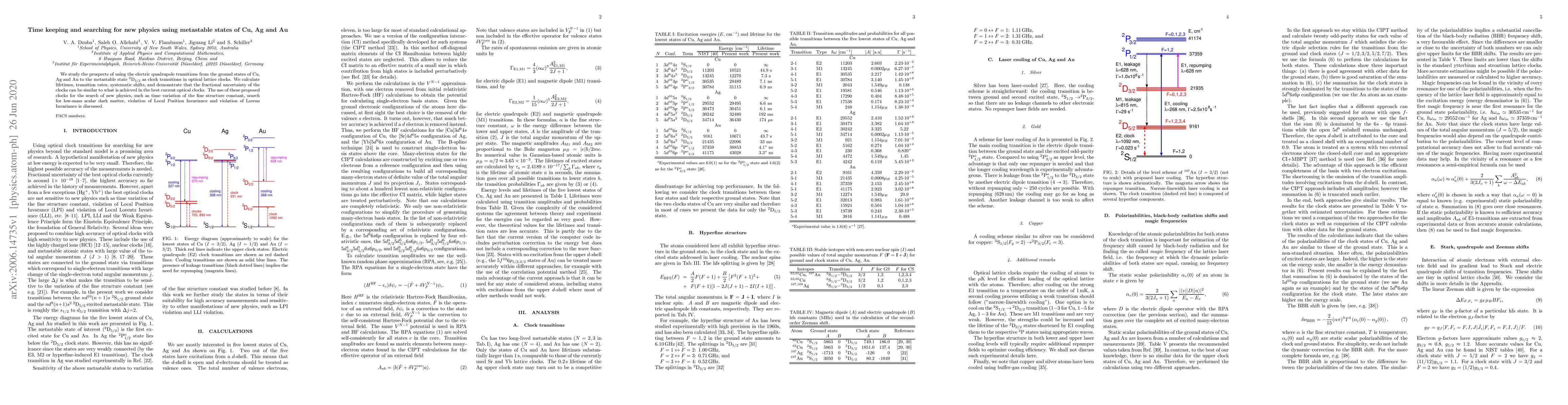 We study the prospects of using the electric quadrupole transitions from the ground states of Cu, Ag and Au to the metastable state $^2{\rm D}_{5/2}$ as clock transitions in optical lattice clocks. We calculate lifetimes, transition rates, systematic shifts, and demonstrate that the fractional uncertainty of the clocks can be similar to what is achieved in the best current optical clocks. The use of these proposed clocks for the search of new physics, such as time variation of the fine structure constant, search for low-mass scalar dark matter, violation of Local Position Invariance and violation of Lorenz Invariance is discussed.