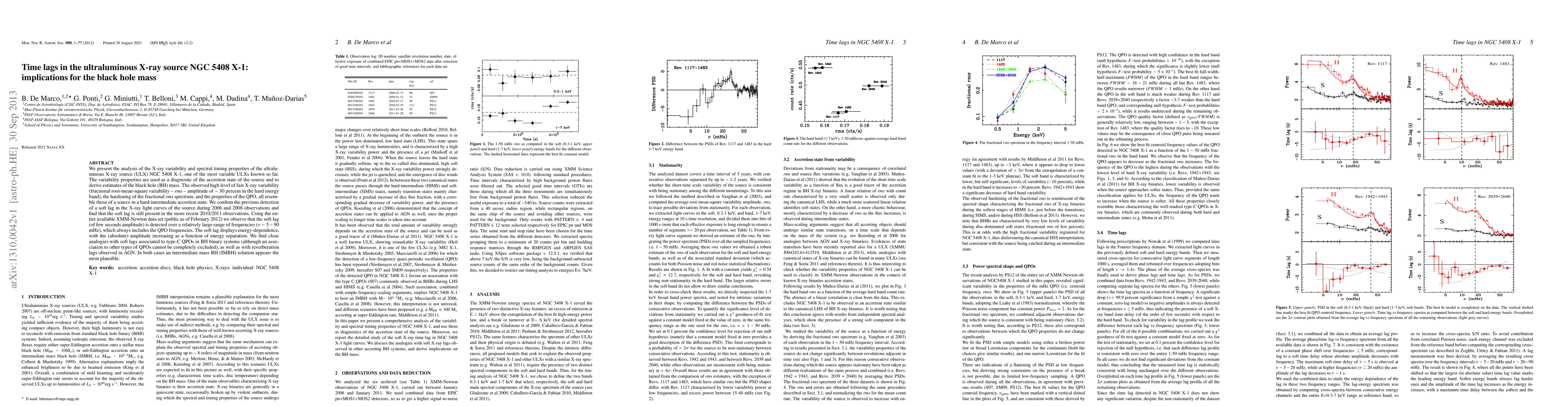 This paper analyzes X-ray variability in NGC 5408 X-1, a supermassive black hole candidate, and finds evidence of a soft lag that suggests an intermediate mass black hole.