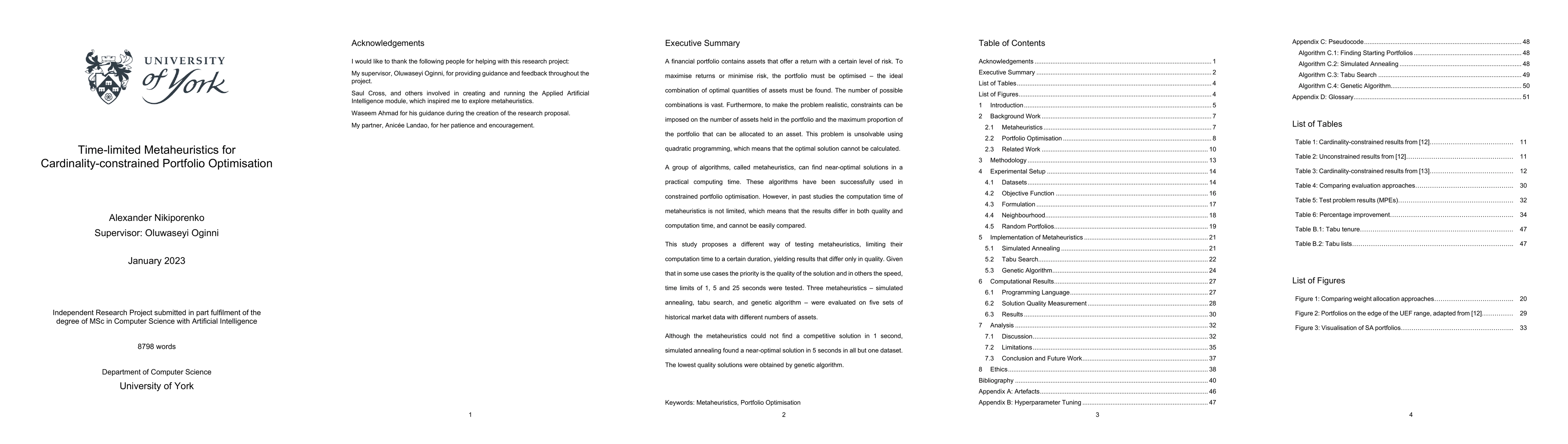 This study explores time-limited metaheuristics for cardinality-constrained portfolio optimisation, proposing a fixed computation time to yield comparable results. Simulated annealing, tabu search, and genetic algorithms were tested over various market datasets, finding that simulated annealing achieved near-optimal solutions within 5 seconds, while genetic algorithms produced the lowest quality solutions.