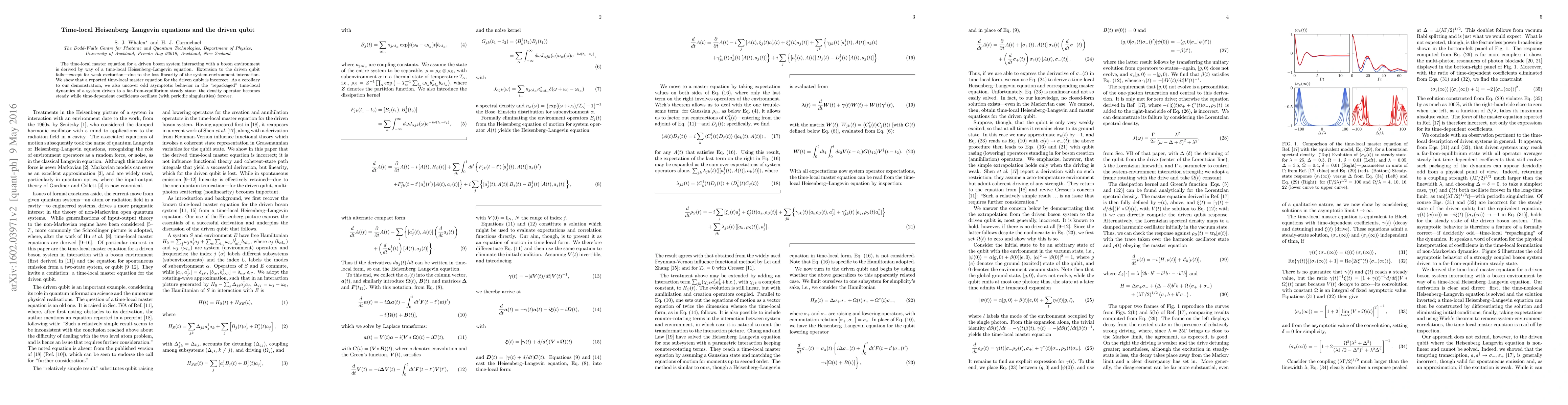 The time-local master equation for a driven boson system interacting with a boson environment is derived by way of a time-local Heisenberg--Langevin equation. Extension to the driven qubit fails---except for weak excitation---due to the lost linearity of the system-environment interaction. We show that a reported time-local master equation for the driven qubit is incorrect. As a corollary to our demonstration, we also uncover odd asymptotic behavior in the "repackaged" time-local dynamics of a system driven to a far-from-equilibrium steady state: the density operator becomes steady while time-dependent coefficients oscillate (with periodic singularities) forever.