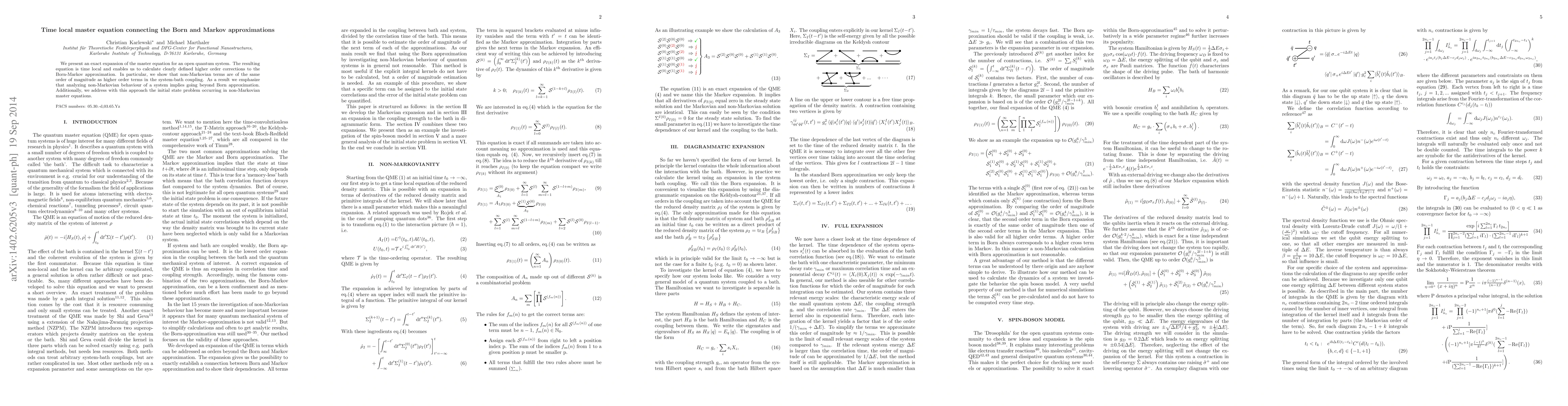 This paper develops a time local master equation for open quantum systems, providing higher-order corrections to the Born-Markov approximation. It highlights that non-Markovian terms are significant and comparable to higher-order coupling terms, stressing the necessity of moving beyond the Born approximation for analyzing non-Markovian behavior.