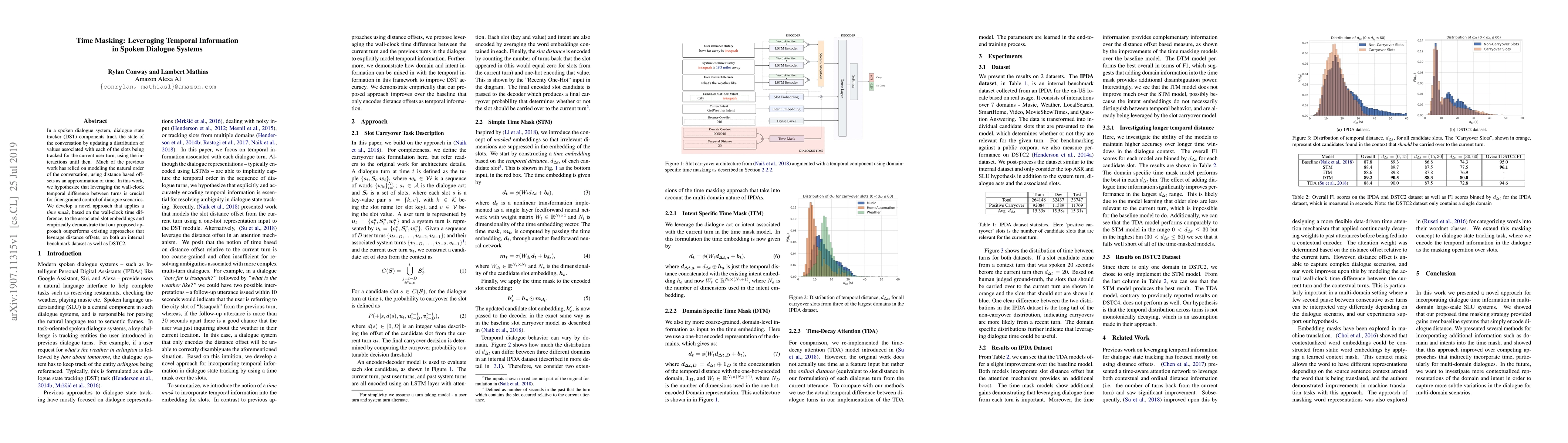 In a spoken dialogue system, dialogue state tracker (DST) components track the state of the conversation by updating a distribution of values associated with each of the slots being tracked for the current user turn, using the interactions until then. Much of the previous work has relied on modeling the natural order of the conversation, using distance based offsets as an approximation of time. In this work, we hypothesize that leveraging the wall-clock temporal difference between turns is crucial for finer-grained control of dialogue scenarios. We develop a novel approach that applies a {\it time mask}, based on the wall-clock time difference, to the associated slot embeddings and empirically demonstrate that our proposed approach outperforms existing approaches that leverage distance offsets, on both an internal benchmark dataset as well as DSTC2.