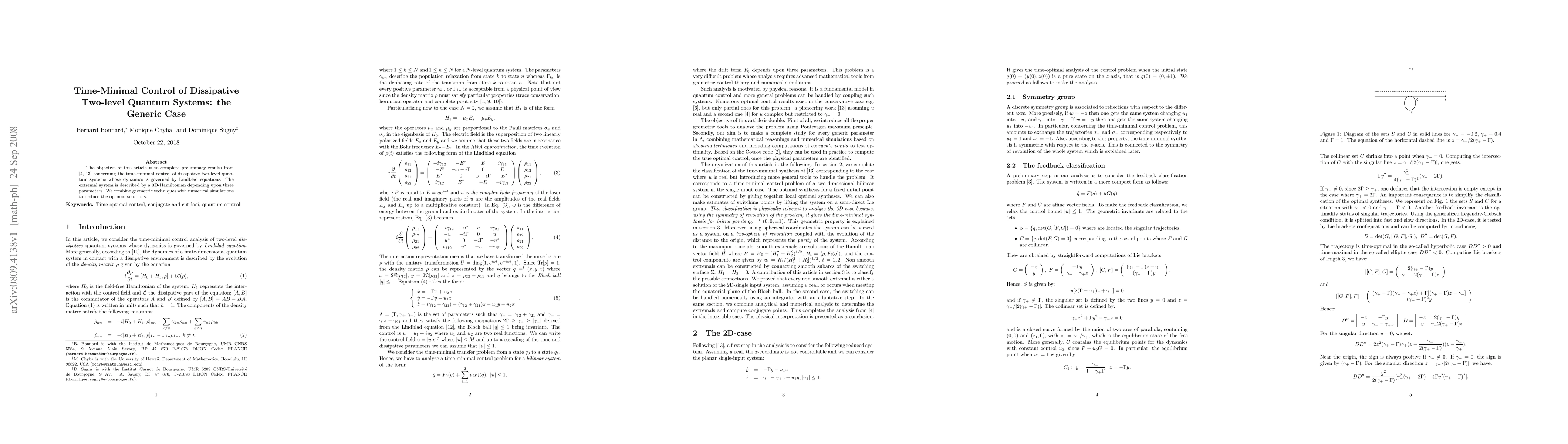 This paper investigates the time-minimal control of dissipative two-level quantum systems described by Lindblad equations, focusing on the extremal 3D-Hamiltonian system. The authors utilize geometric techniques and numerical simulations to determine optimal control solutions.