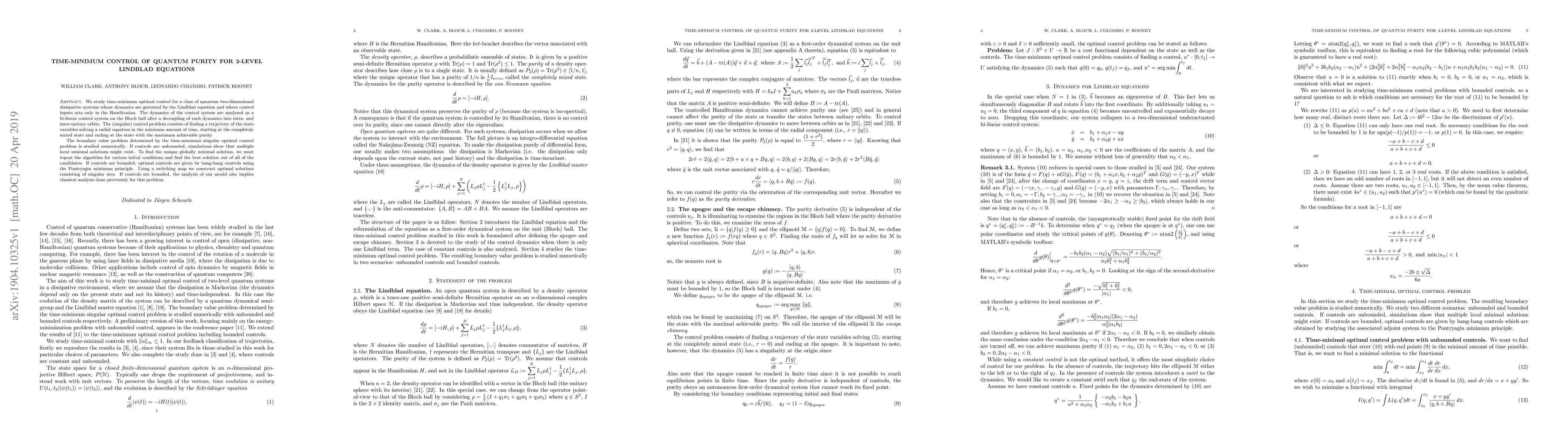 Researchers developed a method to control quantum systems with minimum time, ensuring maximum purity, using a new approach that combines classical and quantum mechanics. The study provides insights into optimal controls for 2-level Lindblad equations, which can be used in various quantum applications.