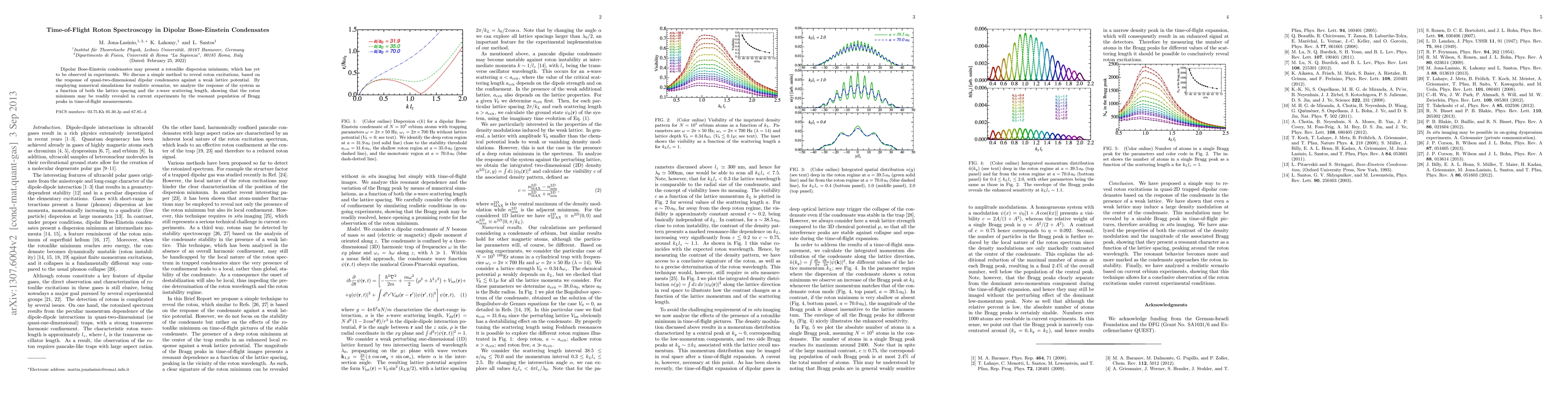 The proposed method provides a new way to reveal roton excitations in quasi-2D trapped dipolar condensates using weak lattice perturbations.