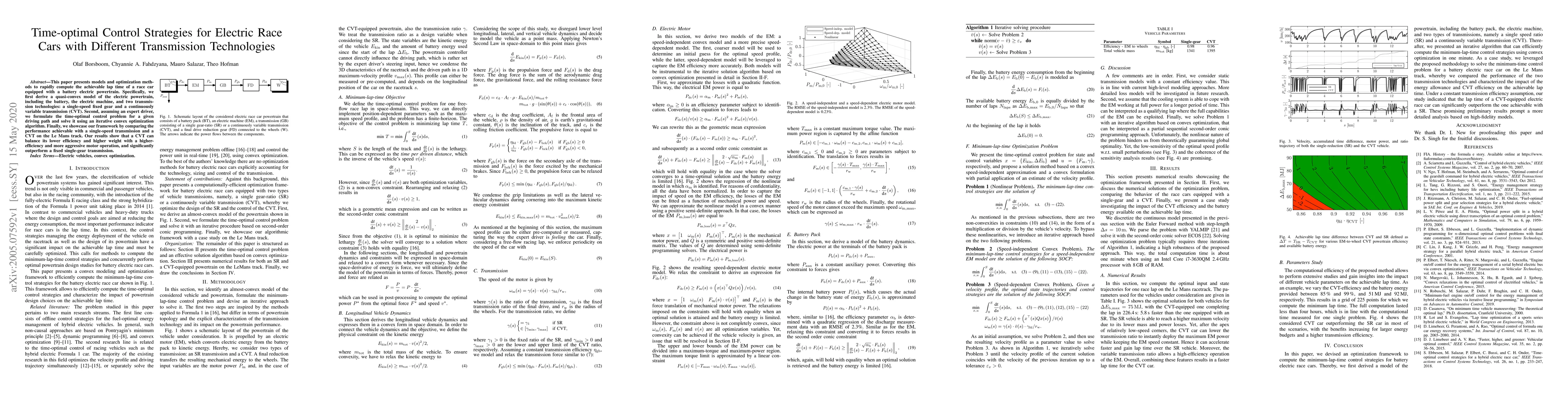 This paper develops models and optimization techniques to determine the fastest lap times for electric race cars using different transmission technologies, comparing single-speed fixed gear and continuously variable transmissions (CVTs). The results indicate that CVTs can outperform fixed gear transmissions by balancing efficiency and weight considerations.