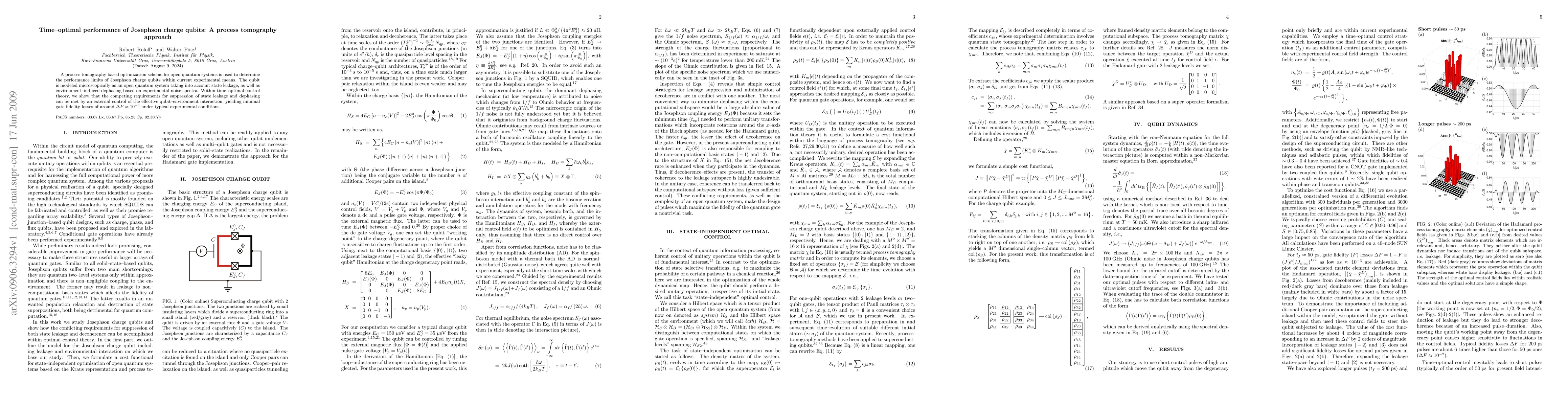 This paper employs process tomography to optimize the performance of Josephson charge qubits, considering state leakage and environment-induced dephasing. Using time-optimal control theory, it demonstrates that minimal gate fidelity losses of approximately $\Delta F \approx 10^{-3}$ can be achieved through effective qubit-environment interaction control.