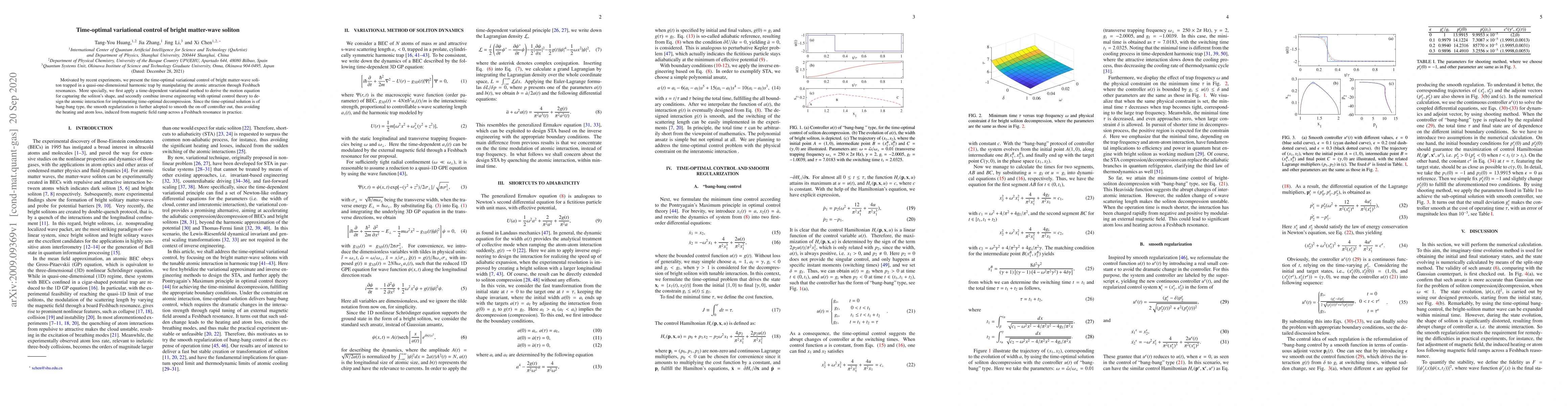 Motivated by recent experiments, we present the time-optimal variational control of bright matter-wave soliton trapped in a quasi-one-dimensional harmonic trap by manipulating the atomic attraction through Feshbach resonances. More specially, we first apply a time-dependent variational method to derive the motion equation for capturing the soliton's shape, and secondly combine inverse engineering with optimal control theory to design the atomic interaction for implementing time-optimal decompression. Since the time-optimal solution is of bang-bang type, the smooth regularization is further adopted to smooth the on-off controller out, thus avoiding the heating and atom loss, induced from magnetic field ramp across a Feshbach resonance in practice.