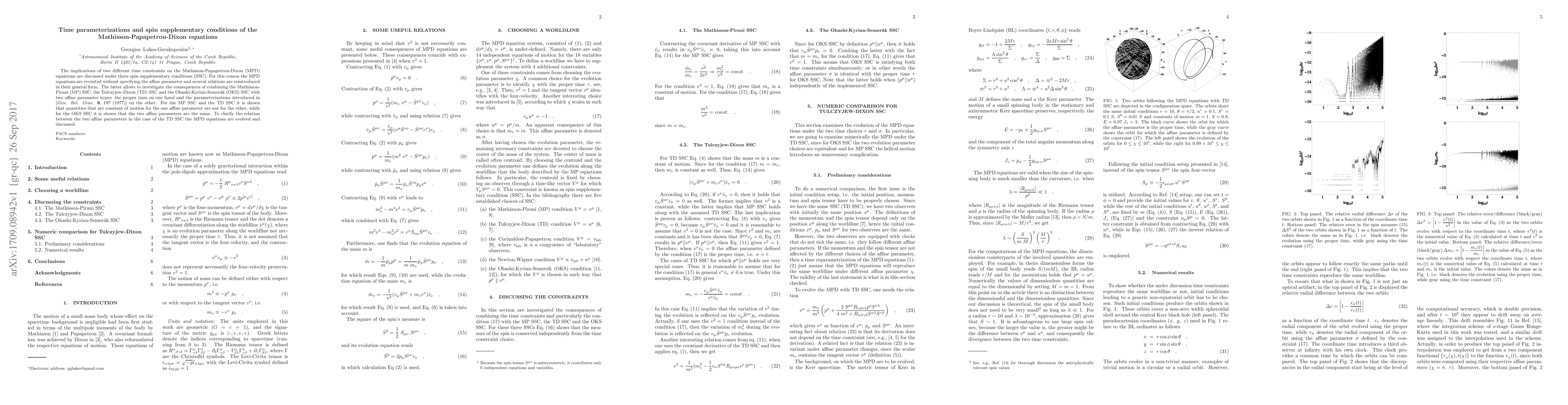 The implications of two different time constraints on the Mathisson-Papapetrou-Dixon (MPD) equations are discussed under three spin supplementary conditions (SSC). For this reason the MPD equations are revisited without specifying the affine parameter and several relations are reintroduced in their general form. The latter allows to investigate the consequences of combining the Mathisson-Pirani (MP) SSC, the Tulczyjew-Dixon (TD) SSC and the Ohashi-Kyrian-Semer\'{a}k (OKS) SSC with two affine parameter types: the proper time on one hand and the parameterizations introduced in [Gen. Rel. Grav. 8, 197 (1977)] on the other. For the MP SSC and the TD SSC it is shown that quantities that are constant of motion for the one affine parameter are not for the other, while for the OKS SSC it is shown that the two affine parameters are the same. To clarify the relation between the two affine parameters in the case of the TD SSC the MPD equations are evolved and discussed.