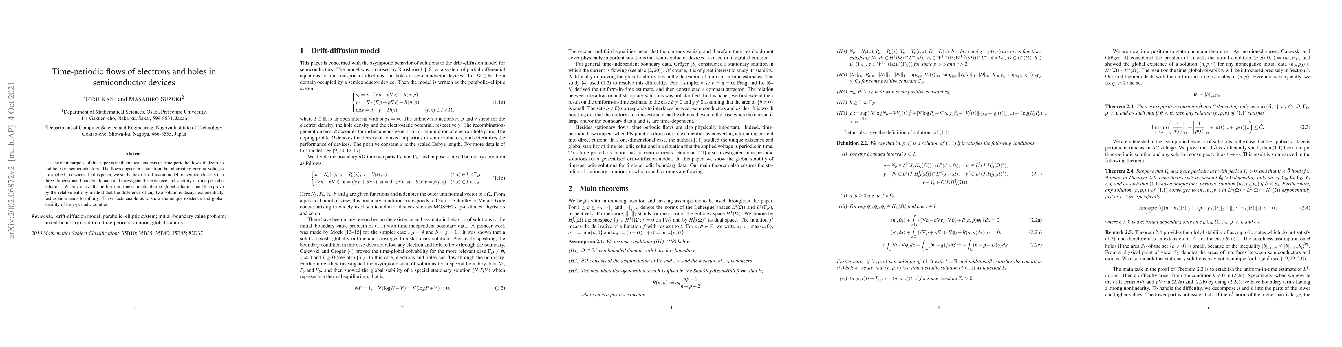 This paper analyzes time-periodic flows of electrons and holes in semiconductors under alternating-current voltages, showing the existence and global stability of periodic solutions.