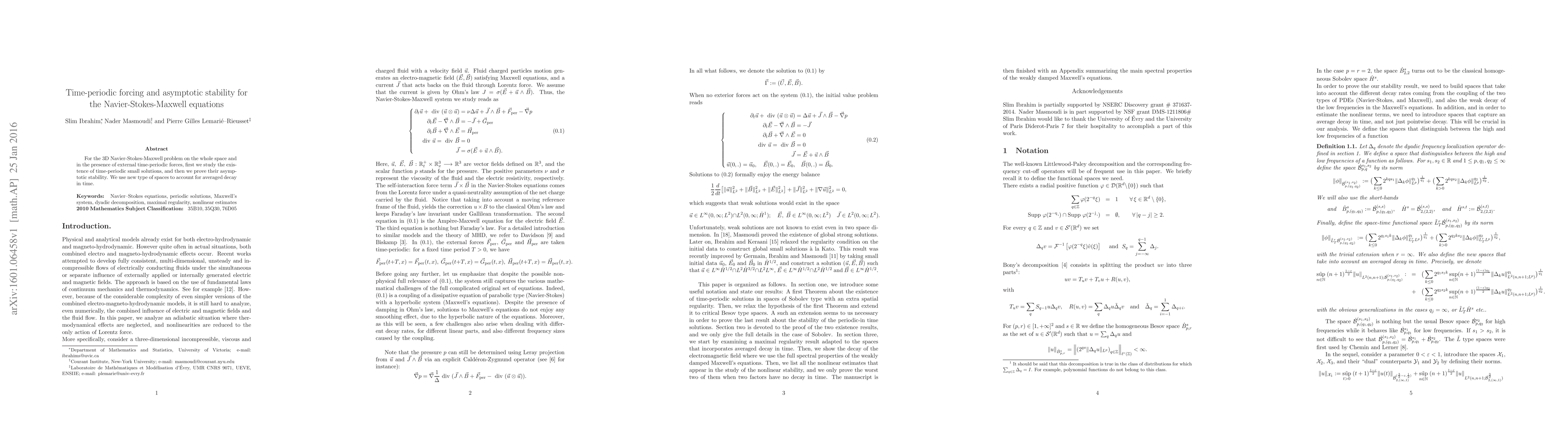 Researchers prove that time-periodic forcing leads to asymptotic stability in solutions of the Navier-Stokes-Maxwell equations, even with external forces, using new types of spaces to account for averaged decay.