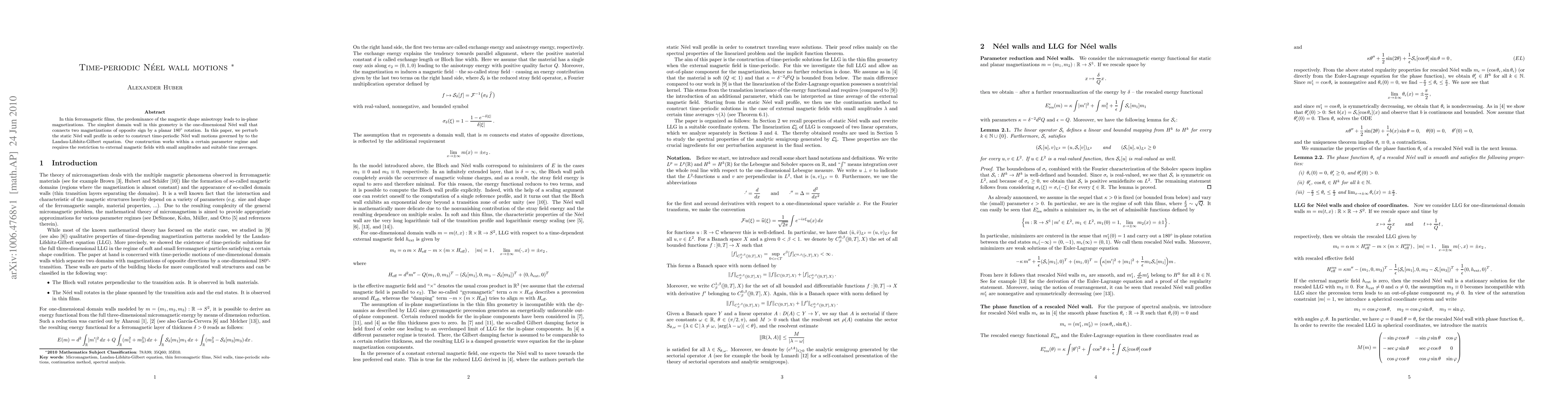 In thin ferromagnetic films, the predominance of the magnetic shape anisotropy leads to in-plane magnetizations. The simplest domain wall in this geometry is the one-dimensional Neel wall that connects two magnetizations of opposite sign by a planar 180 degree rotation. In this paper, we perturb the static Neel wall profile in order to construct time-periodic Neel wall motions governed by to the Landau-Lifshitz-Gilbert equation. Our construction works within a certain parameter regime and requires the restriction to external magnetic fields with small amplitudes and suitable time averages.