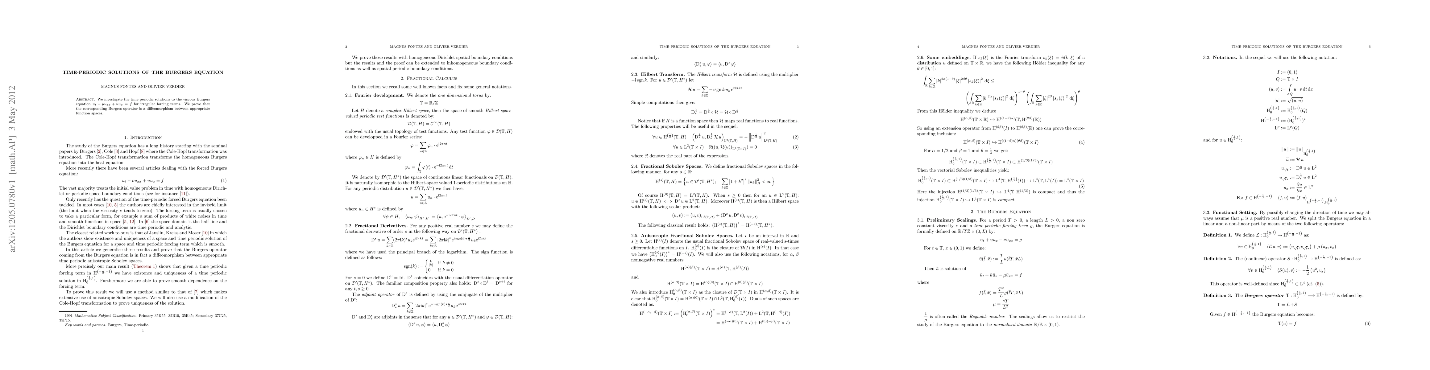 The research investigates time-periodic solutions to the viscous Burgers equation using appropriate function spaces, proving that the Burgers operator is a diffeomorphism.