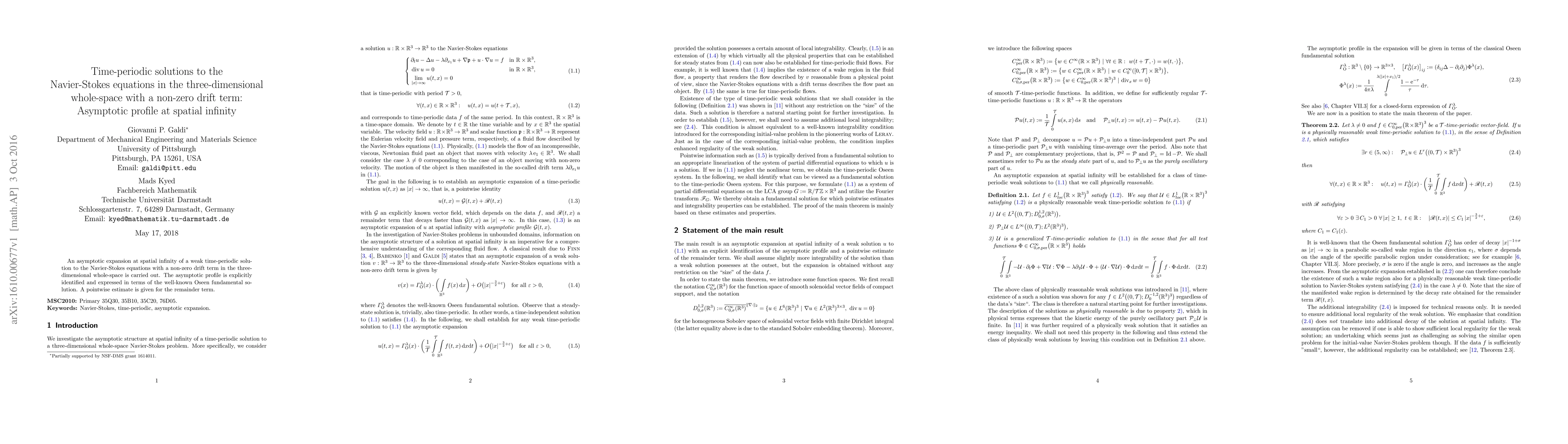 Researchers found an explicit expression for the asymptotic profile of time-periodic solutions to Navier-Stokes equations with a non-zero drift term in three-dimensional space, using the Oseen fundamental solution.
