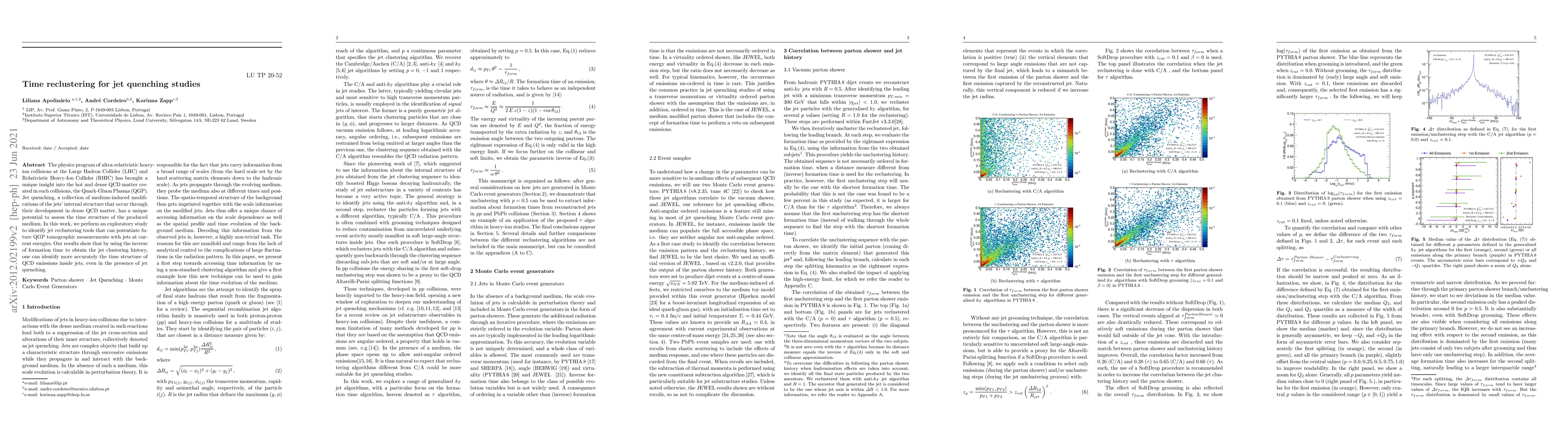 The physics program of ultra-relativistic heavy-ion collisions at the Large Hadron Collider (LHC) and Relativistic Heavy-Ion Collider (RHIC) has brought a unique insight into the hot and dense QCD matter created in such collisions, the Quark-Gluon Plasma (QGP). Jet quenching, a collection of medium-induced modifications of the jets' internal structure that occur through their development in dense QCD matter, has a unique potential to assess the time structure of the produced medium. In this work, we perform an exploratory study to identify jet reclustering tools that can potentiate future QGP tomographic measurements with jets at current energies. Our results show that by using the inverse of formation time to obtain the jet clustering history, one can identify more accurately the time structure of QCD emissions inside jets, even in the presence of jet quenching.