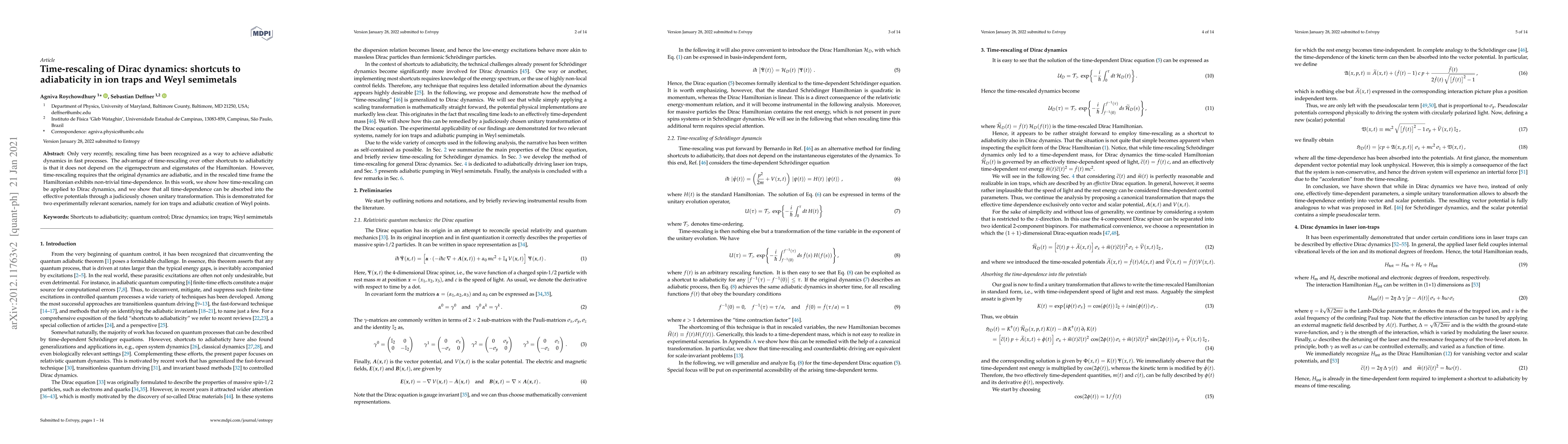 This paper explores the application of time-rescaling to achieve adiabatic dynamics in ion traps and Weyl semimetals, demonstrating that it can absorb all time-dependence into effective potentials via a unitary transformation, offering a novel shortcut to adiabaticity independent of the Hamiltonian's eigenspectrum.