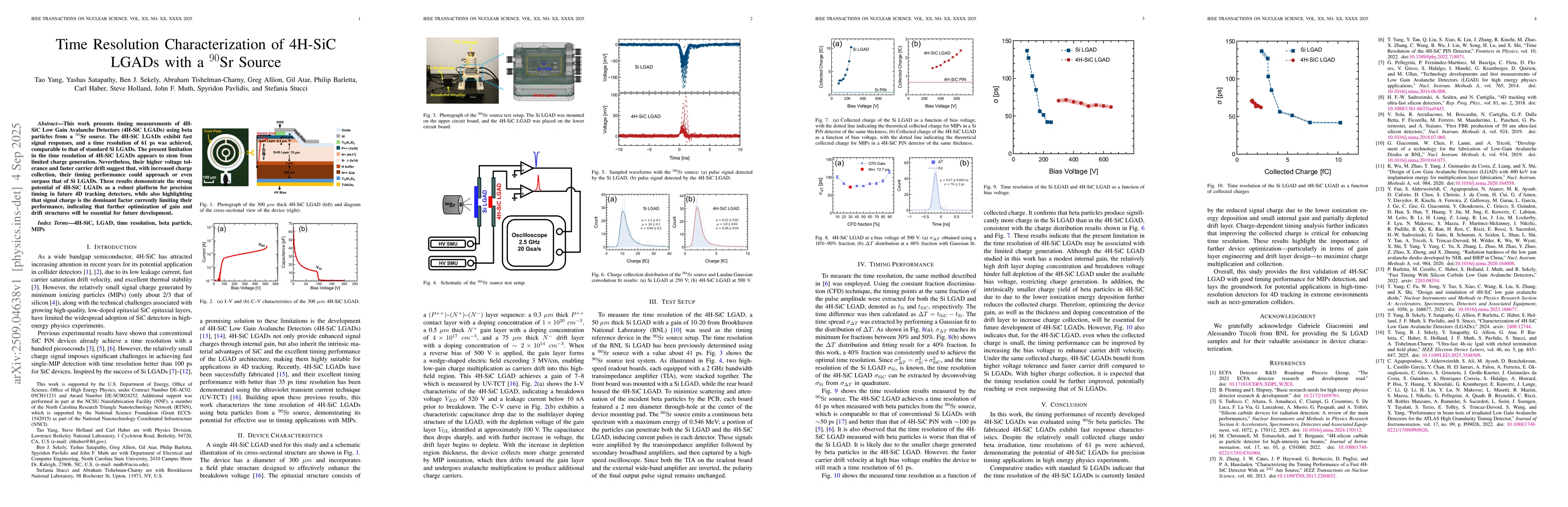 This work presents timing measurements of 4H-SiC Low Gain Avalanche Detectors (4H-SiC LGADs) using beta particles from a ${}^{90}$Sr source. The 4H-SiC LGADs exhibit fast signal responses, and a time resolution of 61~ps was achieved, comparable to that of standard Si LGADs. The present limitation in the time resolution of 4H-SiC LGADs appears to stem from limited charge generation. Nevertheless, their higher voltage tolerance and faster carrier drift suggest that, with increased charge collection, their timing performance could approach or even surpass that of Si LGADs. These results demonstrate the strong potential of 4H-SiC LGADs as a robust platform for precision timing in future 4D tracking detectors, while also highlighting that signal charge is the dominant factor currently limiting their performance, indicating that further optimization of gain and drift structures will be essential for future development.