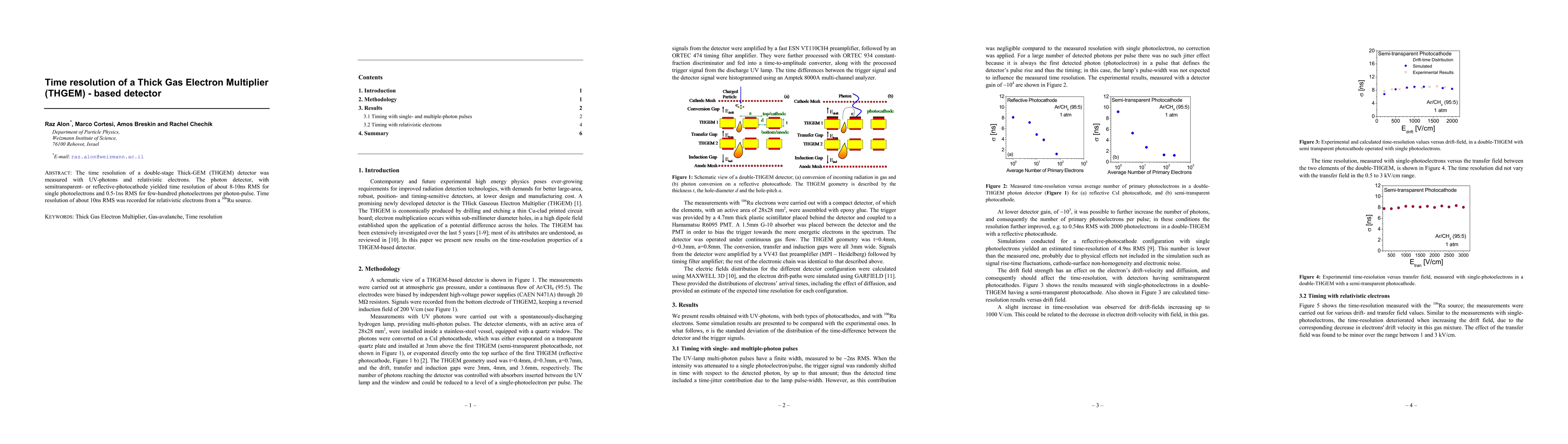 The THGEM detector achieved time resolutions of 8-10 ns RMS for single photoelectrons and 0.5-1 ns RMS for multiple photoelectrons, along with 10 ns RMS for relativistic electrons from a 106Ru source. This demonstrates its potential for high-precision timing applications.