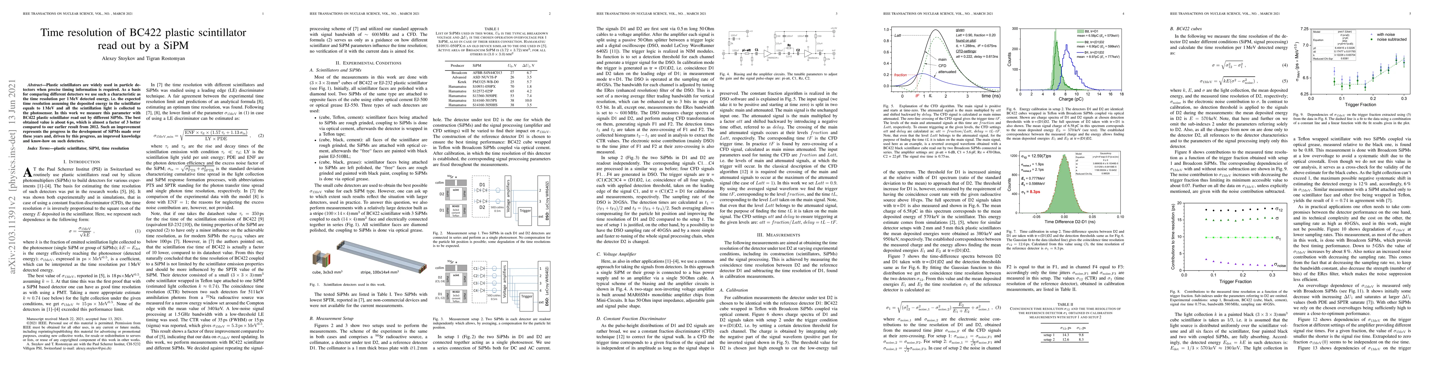 This study measures the time resolution of BC422 plastic scintillator using SiPMs, achieving a best value of 6ps for 1MeV detected energy, nearly tripling the previous 2012 result and showcasing advancements in SiPM technology.
