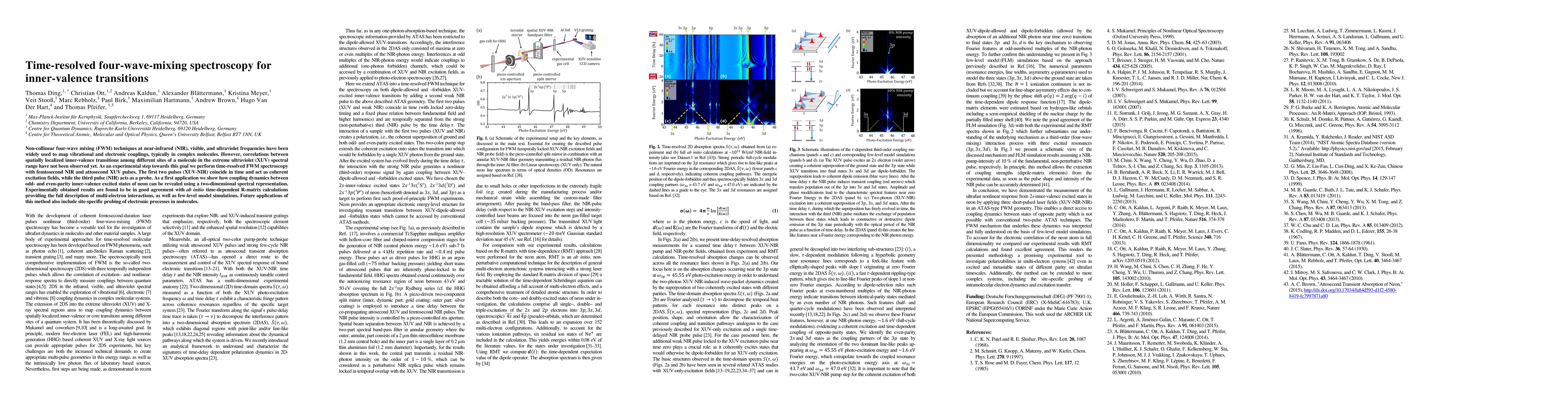This paper presents time-resolved four-wave-mixing spectroscopy using femtosecond NIR and attosecond XUV pulses to investigate inner-valence transitions in neon. The method reveals coupling dynamics between inner-valence excited states, showing good agreement with theoretical calculations and simulations.
