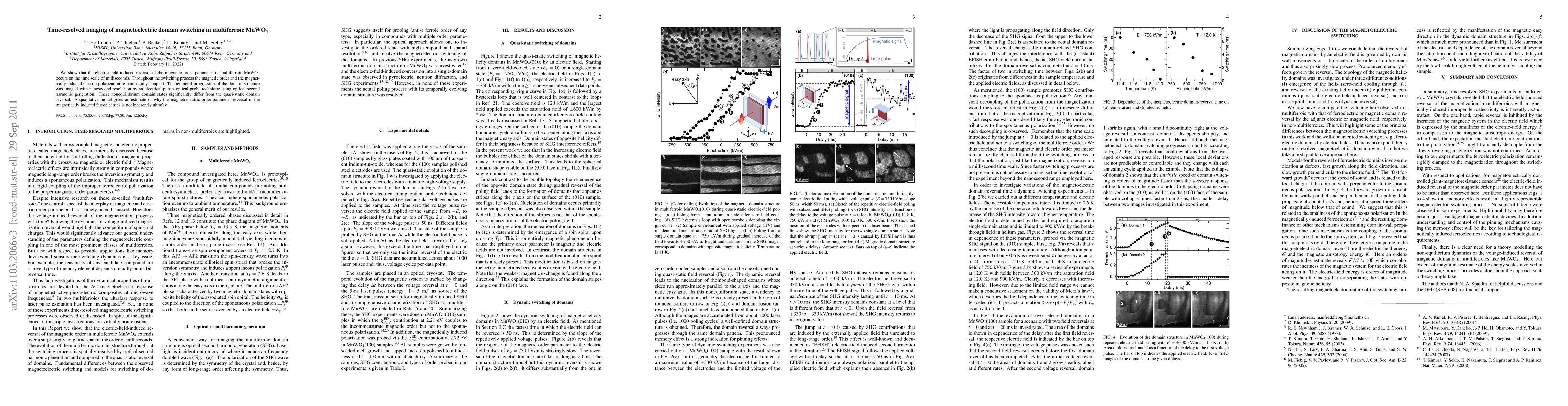 Researchers observed magnetoelectric domain switching in MnWO4 with milliseconds-long time scales, showing a rigid coupling between magnetization and electric polarization. This finding contrasts with predicted ultrafast behavior in quasi-static domain reversals.