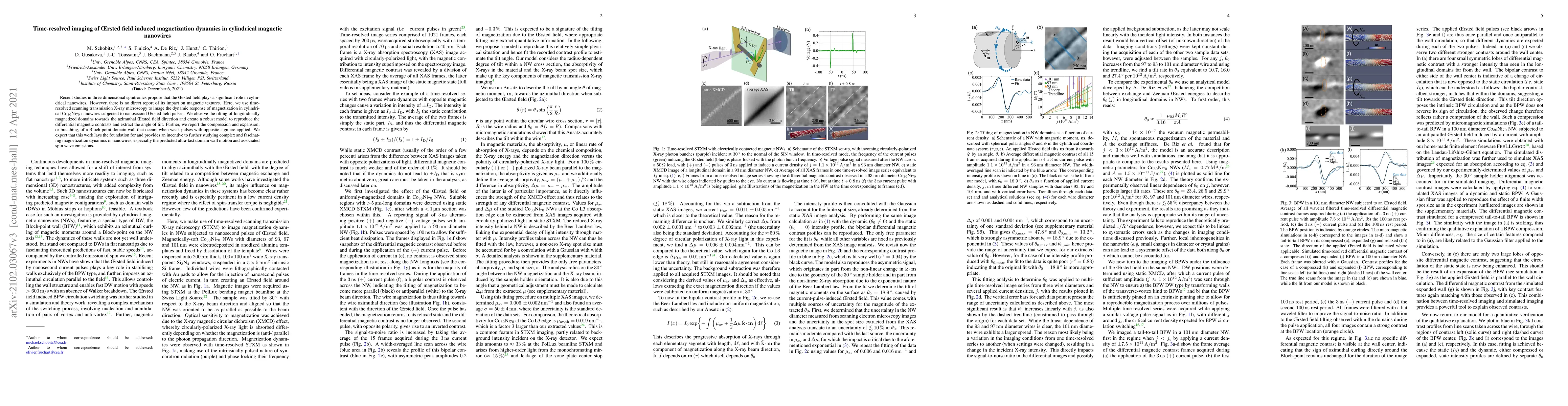 Recent studies in three dimensional spintronics propose that the \OE rsted field plays a significant role in cylindrical nanowires. However, there is no direct report of its impact on magnetic textures. Here, we use time-resolved scanning transmission X-ray microscopy to image the dynamic response of magnetization in cylindrical Co$_{30}$Ni$_{70}$ nanowires subjected to nanosecond \OE rsted field pulses. We observe the tilting of longitudinally magnetized domains towards the azimuthal \OE rsted field direction and create a robust model to reproduce the differential magnetic contrasts and extract the angle of tilt. Further, we report the compression and expansion, or breathing, of a Bloch-point domain wall that occurs when weak pulses with opposite sign are applied. We expect that this work lays the foundation for and provides an incentive to further studying complex and fascinating magnetization dynamics in nanowires, especially the predicted ultra-fast domain wall motion and associated spin wave emissions.