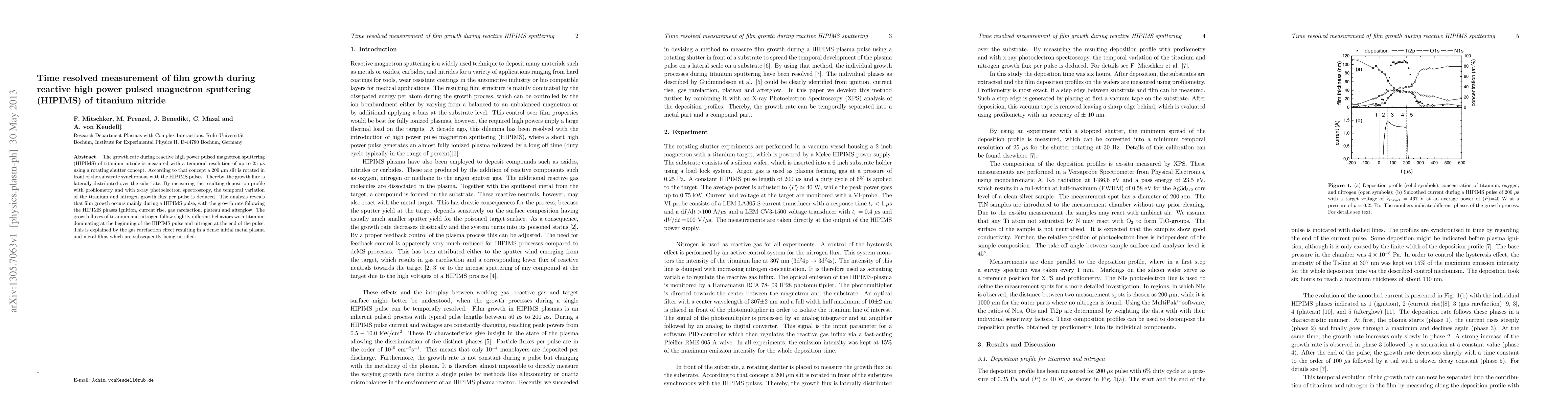 This study measures the growth rate of titanium nitride films during reactive high power pulsed magnetron sputtering (HIPIMS) with high temporal resolution, revealing that film growth primarily occurs during the HIPIMS pulse, with titanium deposition dominating initially and nitrogen deposition occurring towards the end of the pulse due to gas rarefaction effects.