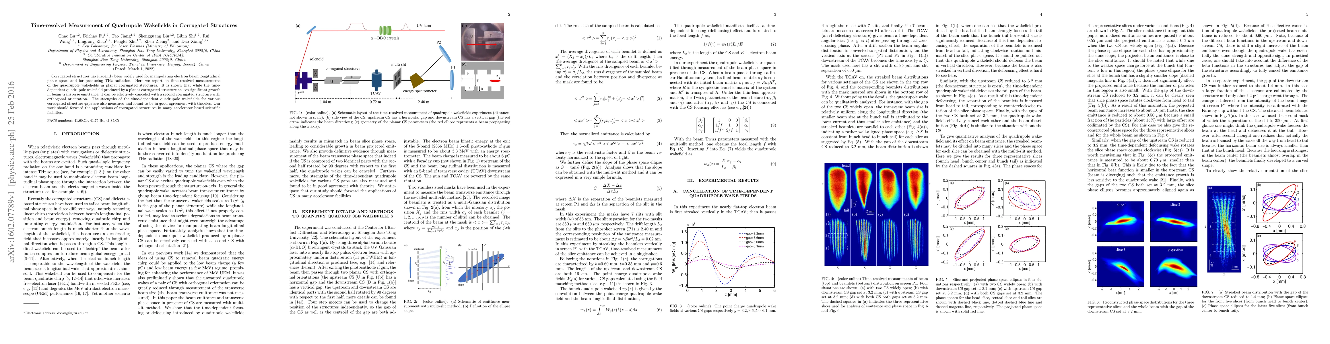 This paper investigates time-resolved quadrupole wakefields in planar corrugated structures, demonstrating significant transverse emittance growth but effective cancellation with orthogonally oriented structures. Theoretical predictions align well with experimental results, enhancing the potential for these structures in accelerator applications.