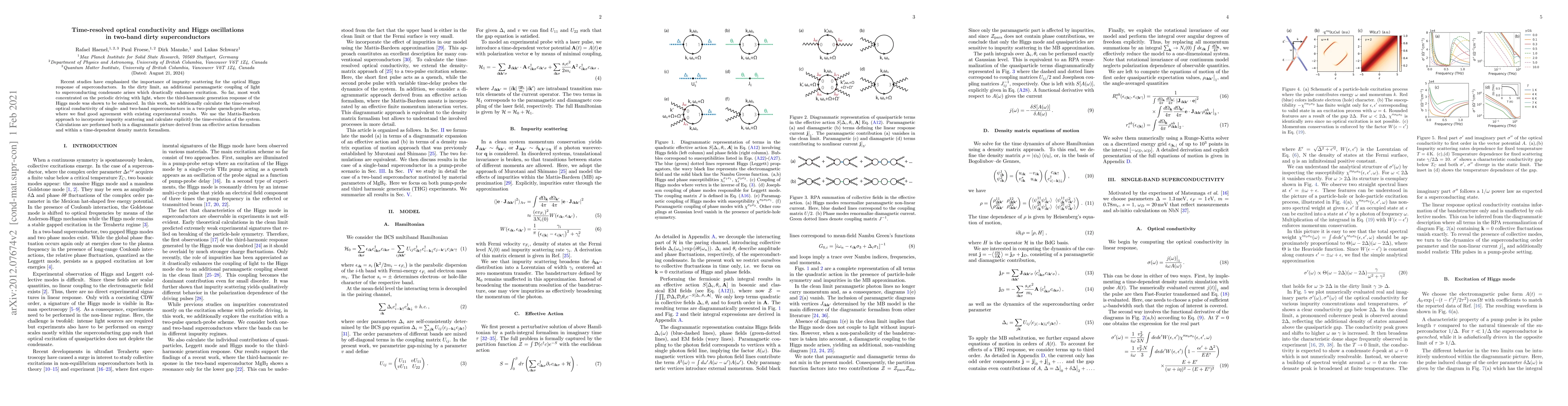 Recent studies have emphasized the importance of impurity scattering for the optical Higgs response of superconductors. In the dirty limit, an additional paramagnetic coupling of light to the superconducting condensate arises which drastically enhances excitation. So far, most work concentrated on the periodic driving with light, where the third-harmonic generation response of the Higgs mode was shown to be enhanced. In this work, we additionally calculate the time-resolved optical conductivity of single- and two-band superconductors in a two-pulse quench-probe setup, where we find good agreement with existing experimental results. We use the Mattis-Bardeen approach to incorporate impurity scattering and calculate explicitly the time-evolution of the system. Calculations are performed both in a diagrammatic picture derived from an effective action formalism and within a time-dependent density matrix formalism.