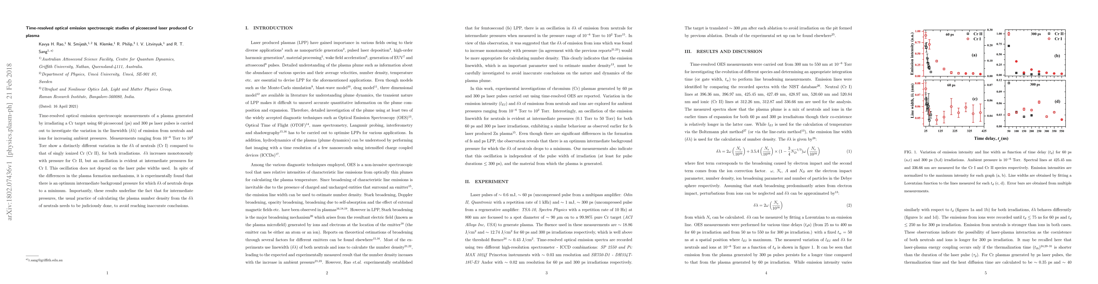 Researchers studied the effects of pressure on the line width of optical emission from chromium plasma created by picosecond laser pulses. They found that the line width increases monotonously with pressure for ions but oscillates at intermediate pressures for neutrals, highlighting the need to adjust calculations to avoid inaccurate conclusions.