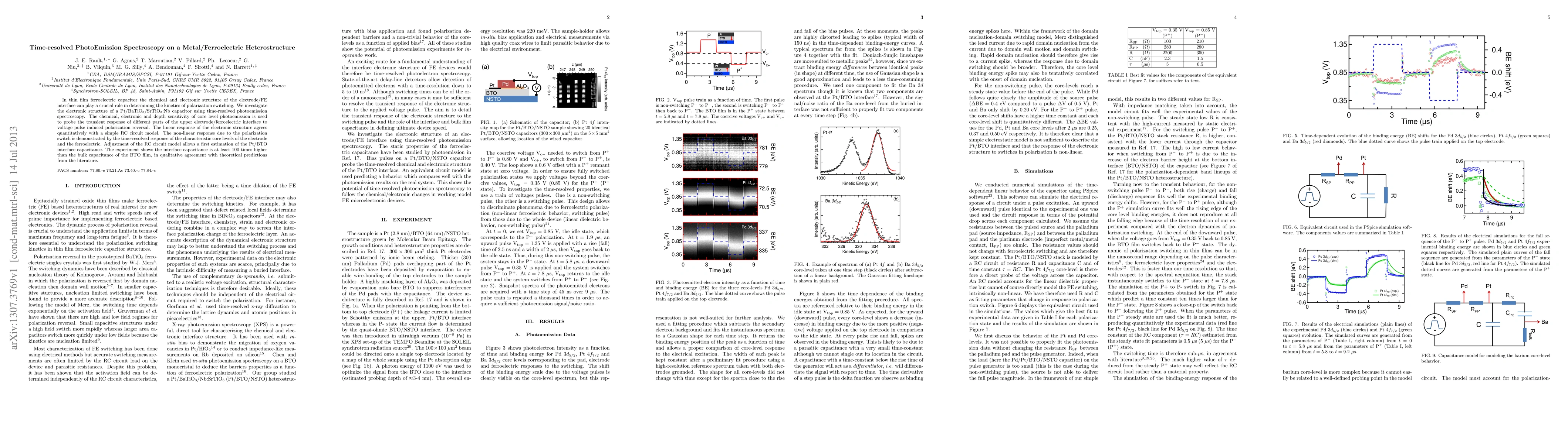 In thin film ferroelectric capacitor the chemical and electronic structure of the electrode/FE interface can play a crucial role in determining the kinetics of polarization switching. We investigate the electronic structure of a Pt/BaTiO3/SrTiO3:Nb capacitor using time-resolved photoemission spectroscopy. The chemical, electronic and depth sensitivity of core level photoemission is used to probe the transient response of different parts of the upper electrode/ferroelectric interface to voltage pulse induced polarization reversal. The linear response of the electronic structure agrees quantitatively with a simple RC circuit model. The non-linear response due to the polarization switch is demonstrated by the time-resolved response of the characteristic core levels of the electrode and the ferroelectric. Adjustment of the RC circuit model allows a first estimation of the Pt/BTO interface capacitance. The experiment shows the interface capacitance is at least 100 times higher than the bulk capacitance of the BTO film, in qualitative agreement with theoretical predictions from the literature.