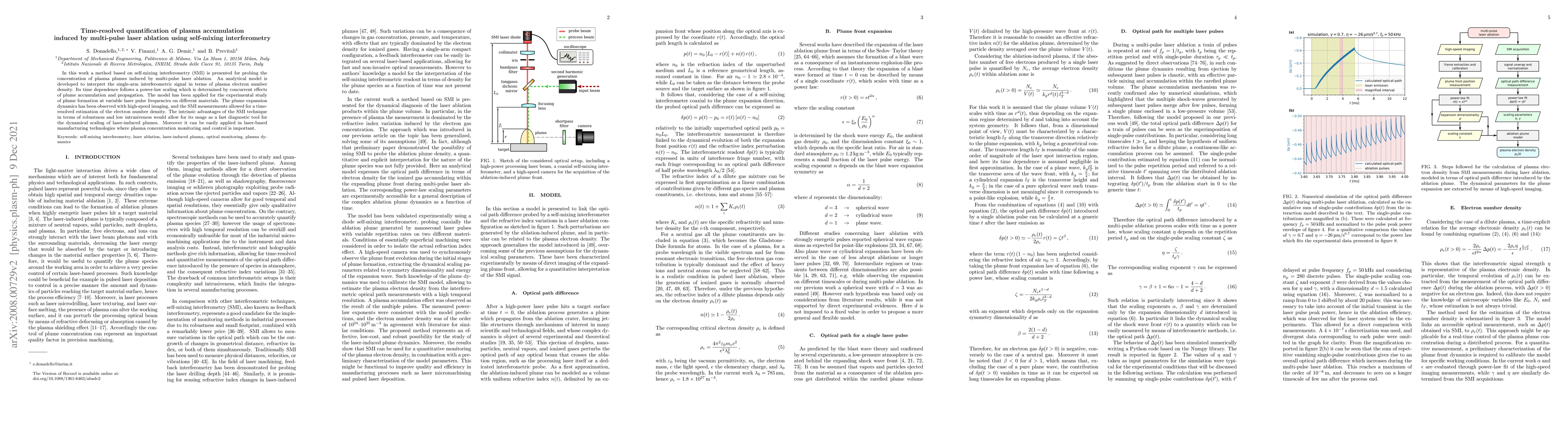 This paper presents a self-mixing interferometry (SMI) method for quantifying plasma plumes from multi-pulse laser ablation, developing an analytical model to interpret interferometric signals in terms of plasma electron density. The technique provides a robust, low-intrusive method for monitoring plume dynamics and could enhance laser-based manufacturing processes.