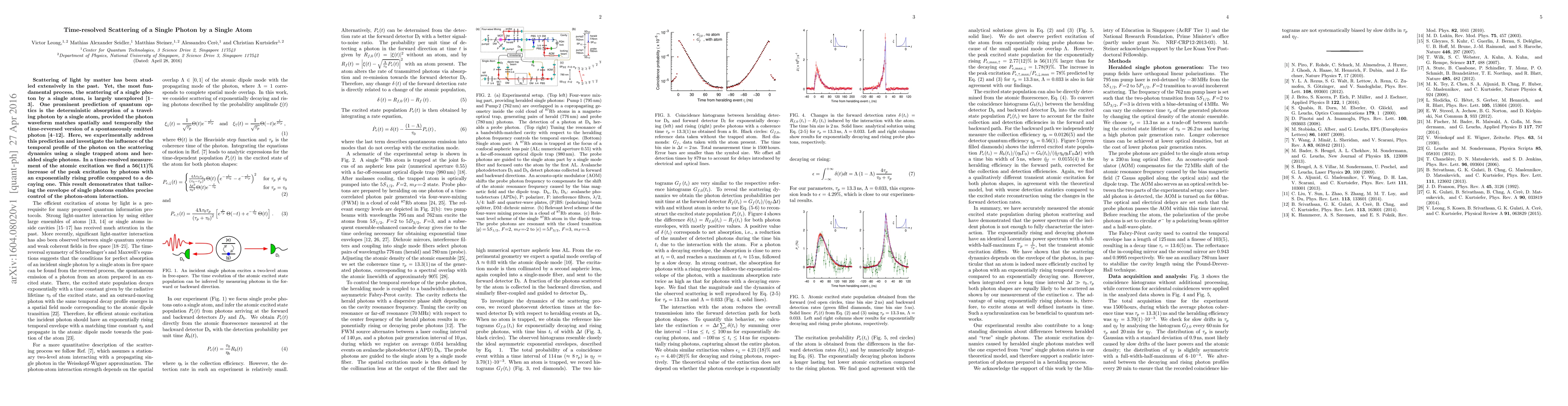 The paper presents a time-resolved measurement of atomic excitation dynamics under single photon scattering, providing experimental evidence for the influence of photon temporal profile on photon-atom interactions.