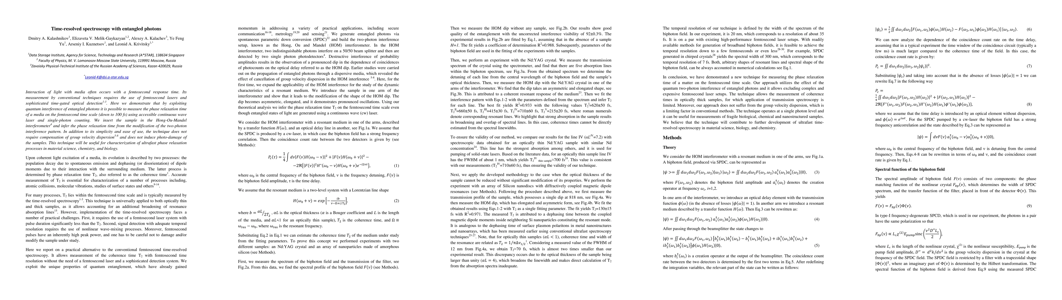 This paper demonstrates a novel method using entangled photons and quantum interference to measure femtosecond phase relaxation times in media, achieving results comparable to conventional techniques but with simpler setups and without the need for femtosecond lasers or compensation for group velocity dispersion. This technique is promising for studying ultrafast processes in material science, chemistry, and biology.