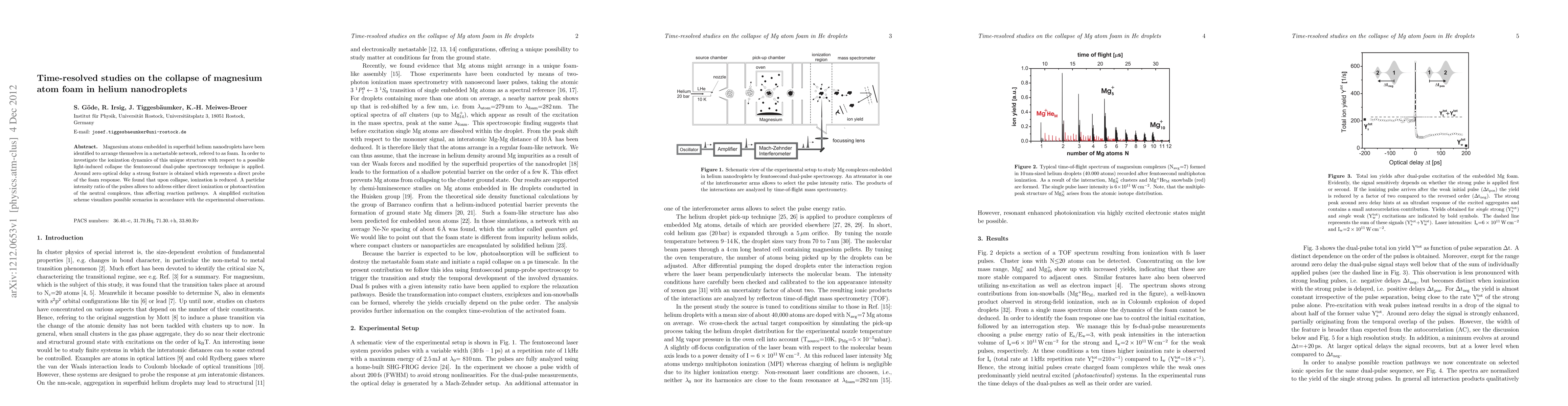 Researchers used a technique called femtosecond dual-pulse spectroscopy to study how magnesium atom foam in helium nanodroplets collapses when exposed to light. They found that ionization is reduced upon collapse and can be affected by the intensity ratio of the pulses, providing insight into possible reaction pathways.