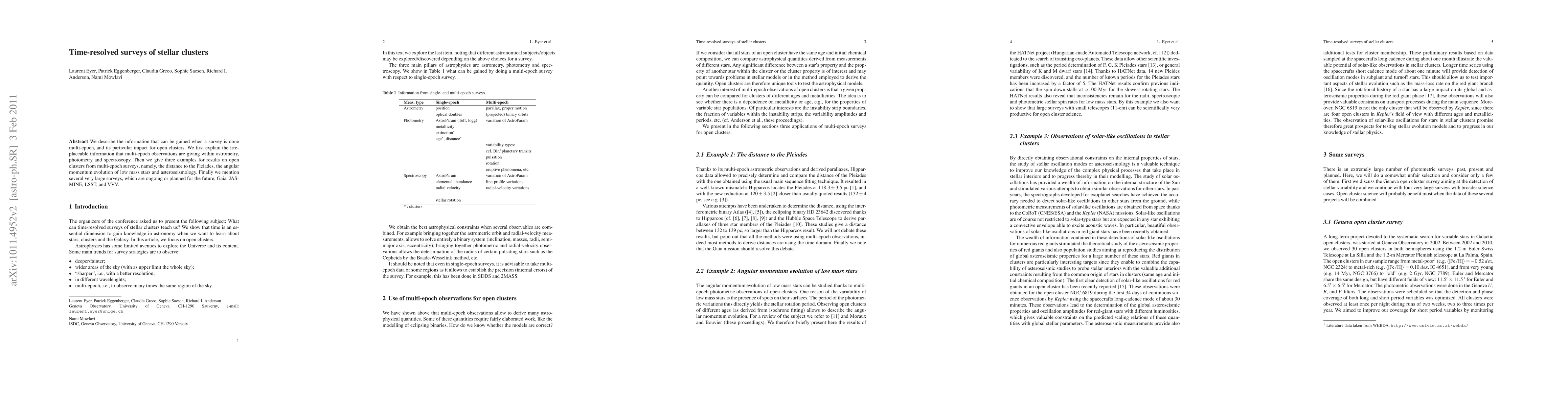 We describe the information that can be gained when a survey is done multi-epoch, and its particular impact for open clusters. We first explain the irreplaceable information that multi-epoch observations are giving within astrometry, photometry and spectroscopy. Then we give three examples for results on open clusters from multi-epoch surveys, namely, the distance to the Pleiades, the angular momentum evolution of low mass stars and asteroseismology. Finally we mention several very large surveys, which are ongoing or planned for the future, Gaia, JASMINE, LSST, and VVV.