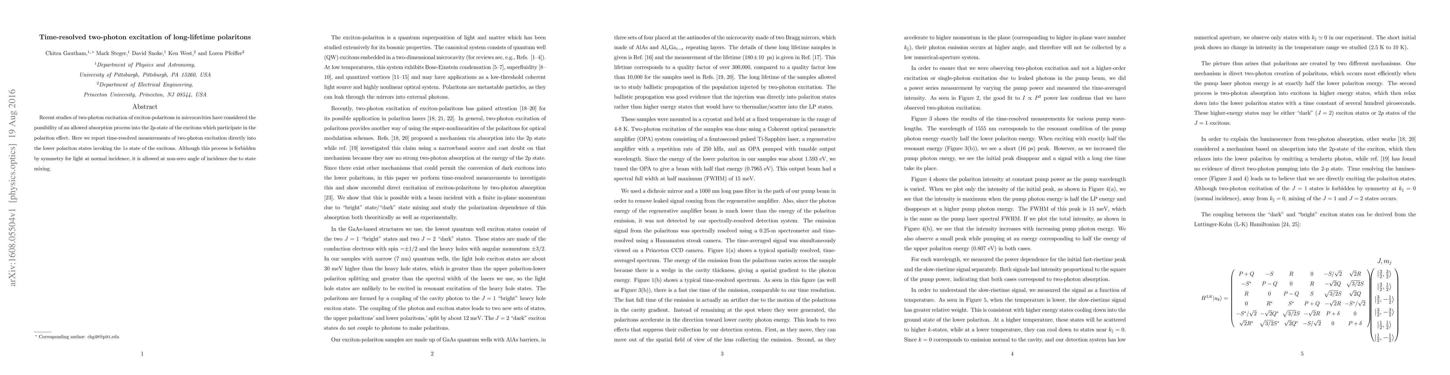 Recent studies of two-photon excitation of exciton-polaritons in microcavities have considered the possibility of an allowed absorption process into the $2p$-state of the excitons which participate in the polariton effect. Here we report time-resolved measurements of two-photon excitation directly into the lower polariton states invoking the $1s$ state of the excitons. Although this process is forbidden by symmetry for light at normal incidence, it is allowed at non-zero angle of incidence due to state mixing.