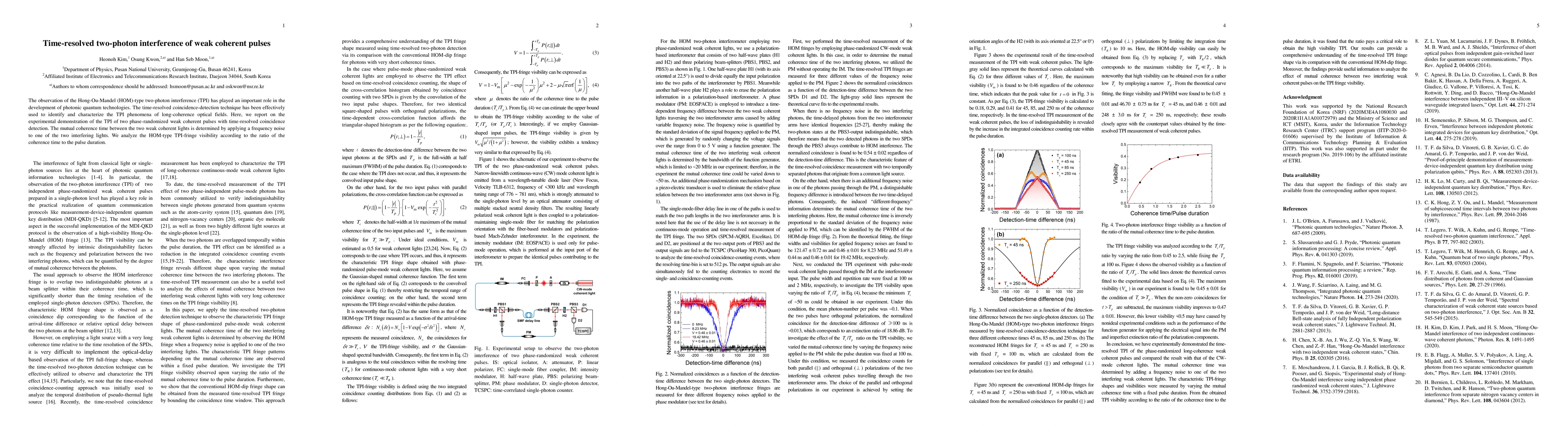 This paper demonstrates the experimental observation of two-photon interference (TPI) using time-resolved coincidence detection for phase-randomized weak coherent pulses. The study determines the mutual coherence time by introducing frequency noise and analyzes the TPI-fringe visibility based on the coherence time relative to pulse duration.