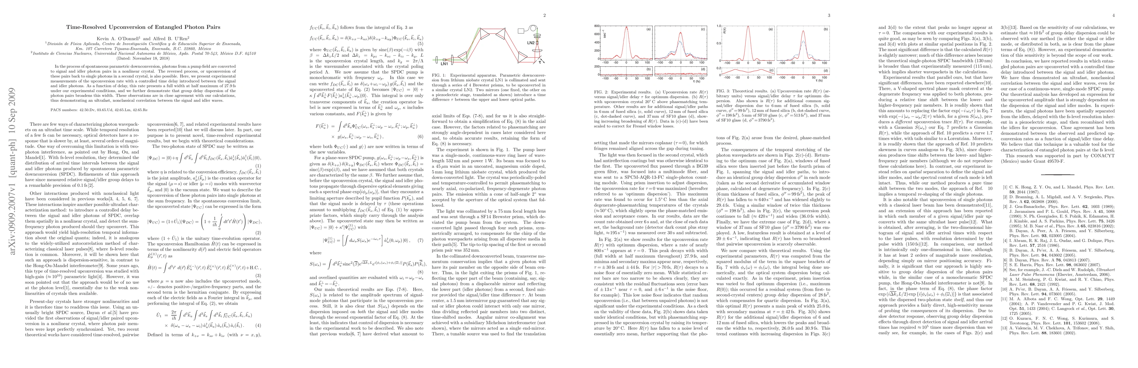 Researchers experimentally measured the upconversion rate of entangled photon pairs in a nonlinear crystal, finding a full width at half maximum of 27.9 fs that is broadened by group delay dispersion.