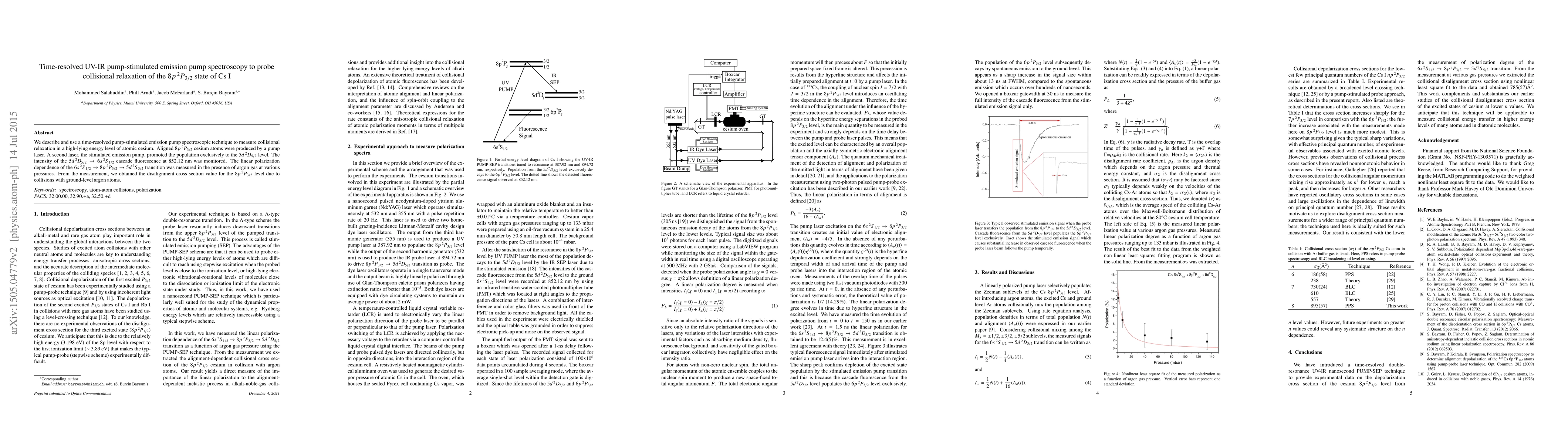 We describe and use a time-resolved pump-stimulated emission pump spectroscopic technique to measure collisional relaxation in a high-lying energy level of atomic cesium. Aligned $8p\,^2P_{3/2}$ cesium atoms were produced by a pump laser. A second laser, the stimulated emission pump, promoted the population exclusively to the $5d\,^2D_{5/2}$ level. The intensity of the $5d\,^2D_{5/2}\rightarrow6s\,^2S_{1/2}$ cascade fluorescence at 852.12 nm was monitored. The linear polarization dependence of the $6s\,^2S_{1/2}\rightarrow8p\,^2P_{3/2}\rightarrow5d\,^2S_{5/2}$ transition was measured in the presence of argon gas at various pressures. From the measurement, we obtained the disalignment cross section value for the $8p\,^2P_{3/2}$ level due to collisions with ground-level argon atoms.