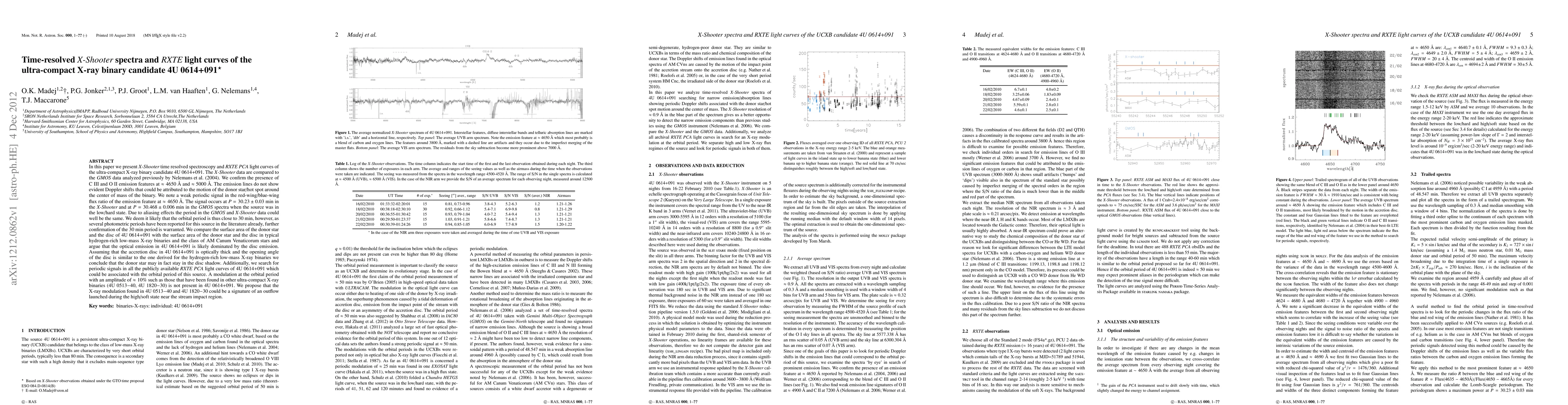 This paper analyzes X-Shooter spectroscopy and RXTE light curves of 4U 0614+091, confirming C III and O II emission features without significant Doppler shifts. A weak periodic signal suggests an orbital period close to 30 min, though further confirmation is needed. The optical emission is likely dominated by disc emission rather than the donor star.