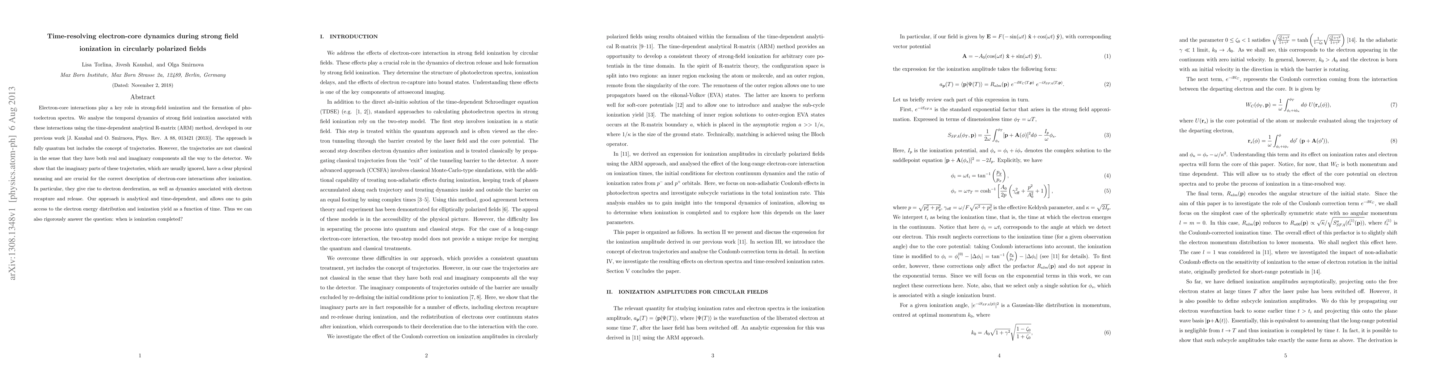 This paper investigates the temporal dynamics of electron-core interactions during strong-field ionization in circularly polarized fields using a time-dependent analytical R-matrix method. It reveals that the imaginary parts of quantum trajectories are essential for describing electron deceleration and dynamics post-ionization, providing insights into the completion of ionization.