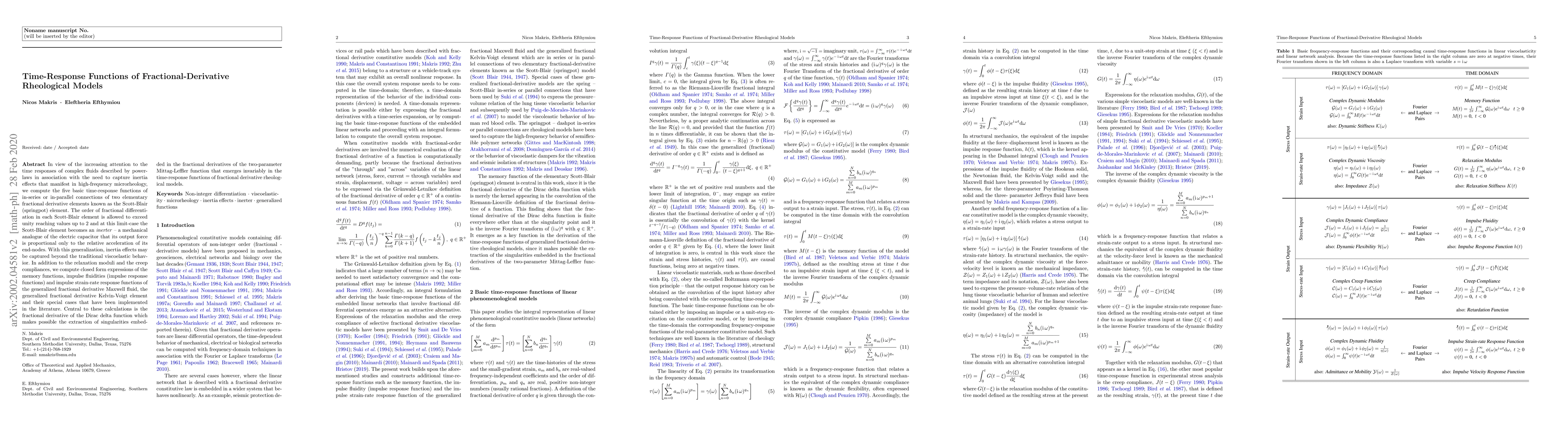 Researchers developed time-response functions for complex fluids described by power-laws, capturing inertia effects, and generalized fractional derivative models, which can accurately describe viscoelastic behavior and beyond.
