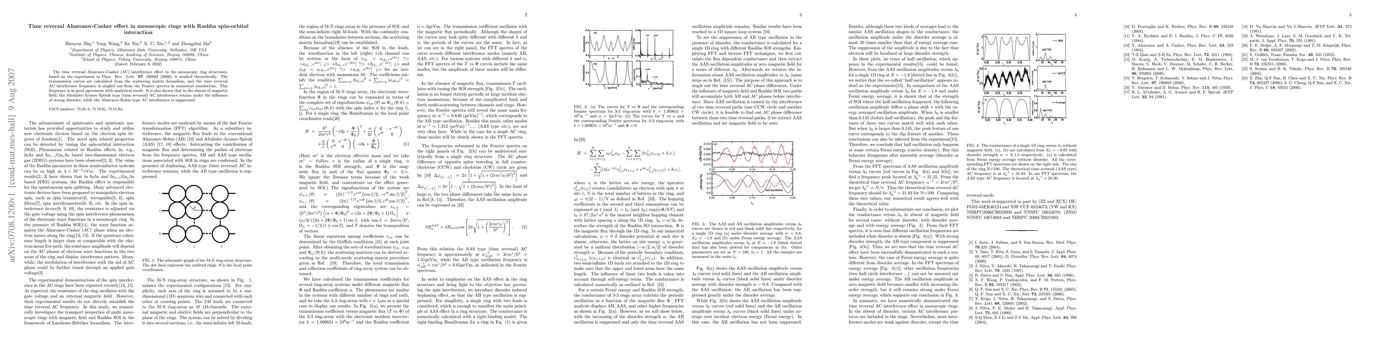 The study investigates the Time Reversal Aharonov-Casher effect in mesoscopic rings with Rashba spin-orbital interaction, finding that it retains under disorder but is suppressed in absence of magnetic field.
