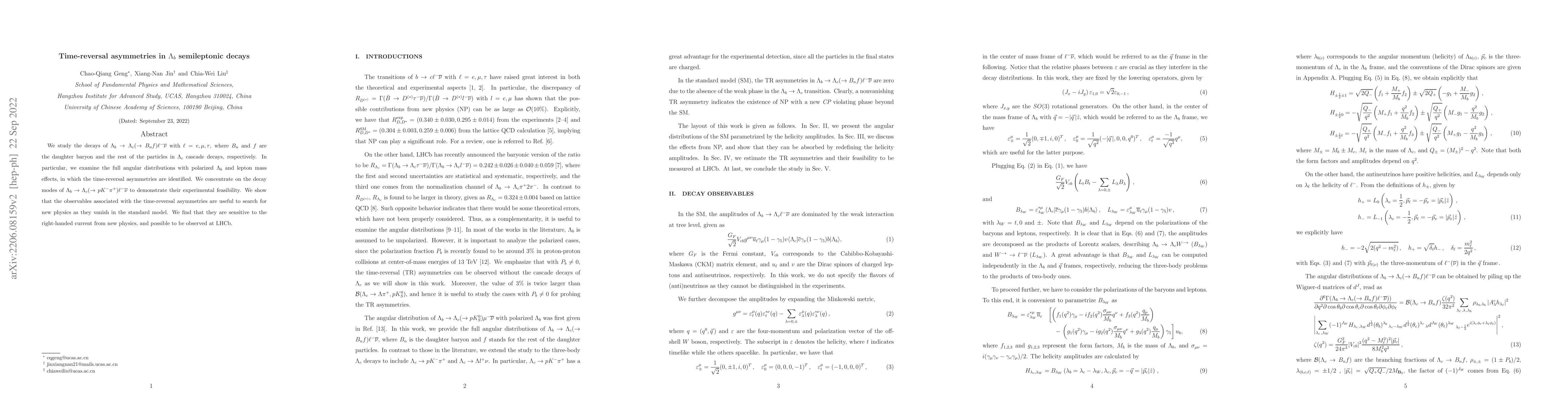 We study the decays of $\Lambda_b \to \Lambda_c(\to B_n f) \ell ^- \overline{\nu}$ with $\ell = e, \mu, \tau$, where $B_n$ and $f$ are the daughter baryons and the rest of the particles in $\Lambda_c$ cascade decays, respectively. In particular, we examine the full angular distributions with polarized $\Lambda_b$ and lepton mass effects, in which the time-reversal asymmetries are identified. We concentrate on the decay modes of $\Lambda_b \to \Lambda_c(\to p K^- \pi^+) \ell ^- \overline{\nu}$ to demonstrate their experimental feasibility. We show that the observables associated with the time-reversal asymmetries are useful to search for new physics as they vanish in the standard model. Explicitly, we find that they are sensitive to the right-handed current from new physics, and possible to be observed at LHCb.