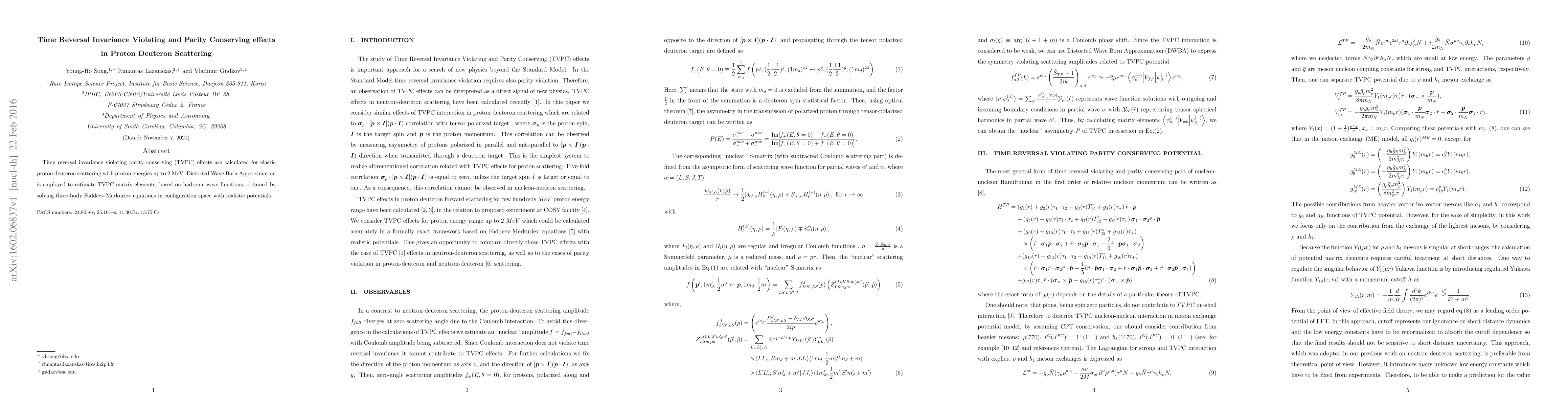Summary: This study calculates time reversal invariance violating, yet parity conserving (TVPC) effects in proton-deuteron scattering using the Distorted Wave Born Approximation. The research employs realistic potentials and solves three-body Faddeev-Merkuriev equations to determine the hadronic wave functions.